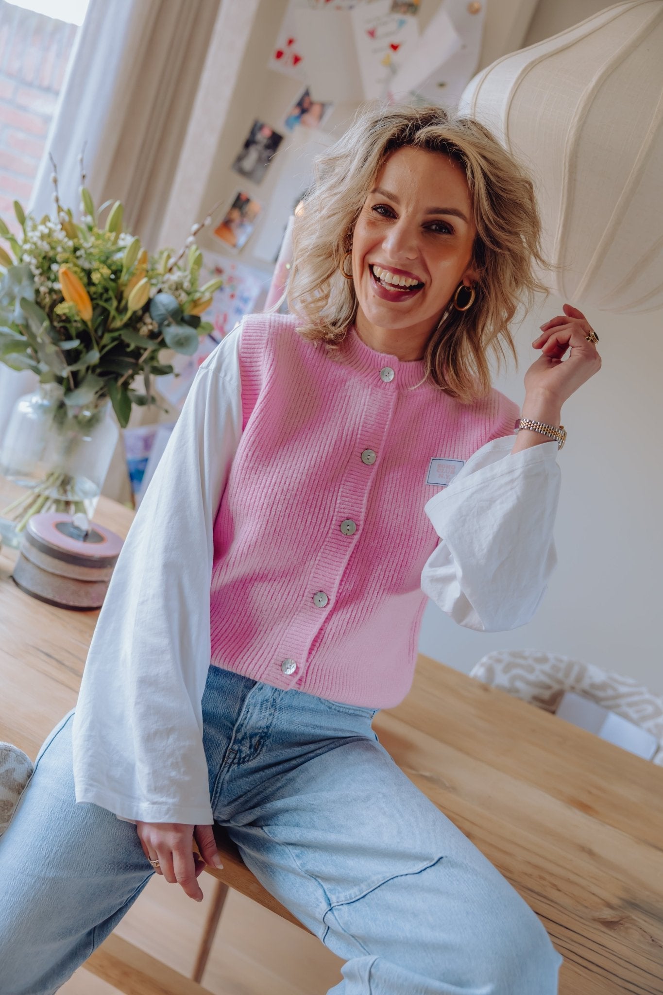 Het Soho Gilet in roze is een gebreid gilet en perfect om te dragen als extra laagje. Het gilet is heerlijk warm en is voorzien van een knoopsluiting aan de voorkant en een patch op de borst.