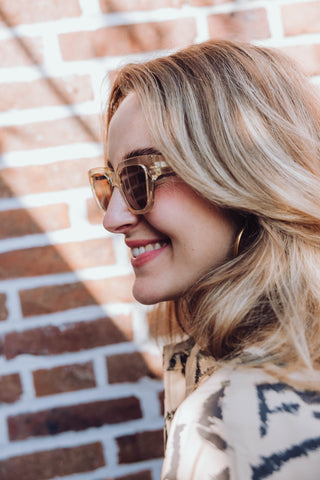 De Kaws - Burnt Amber zonnebril van A.KJAERBEDE heeft een transparant montuur met een subtiele cat-eye vorm. De UV 400 bescherming en polycarbonaat lenzen bieden optimale oogbescherming, terwijl de vervormbare pootjes met metalen kern en hoogwaardige scharnieren zorgen voor een comfortabele pasvorm. Gemaakt van meer dan 50% gerecycleerde materialen, BPA-vrij en geleverd met een reinigingszak.