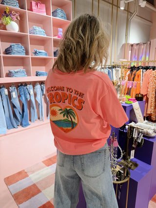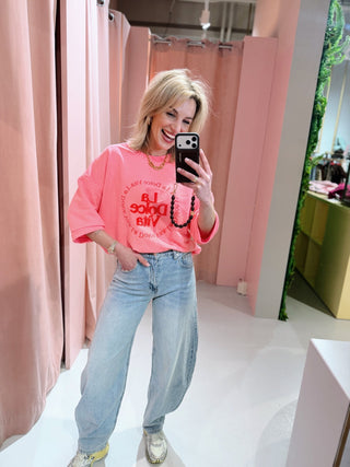 T-shirts zijn de basis van elke garderobe. Een goed T-shirt voor dames zit lekker, staat goed en past overal bij. Of je nu gaat voor casual, vrouwelijk of juist iets opvallends, met de juiste T-shirts zit je altijd goed. Bij HYPE! Mode vind je een brede collectie dames T-shirts in verschillende fits en stijlen. Van oversized tot aangesloten en van basic tot opvallend, er is altijd een T-shirt dat bij je past. Ontdek jouw nieuwe favorieten en combineer ze met onze jeans of rokken voor een complete look.