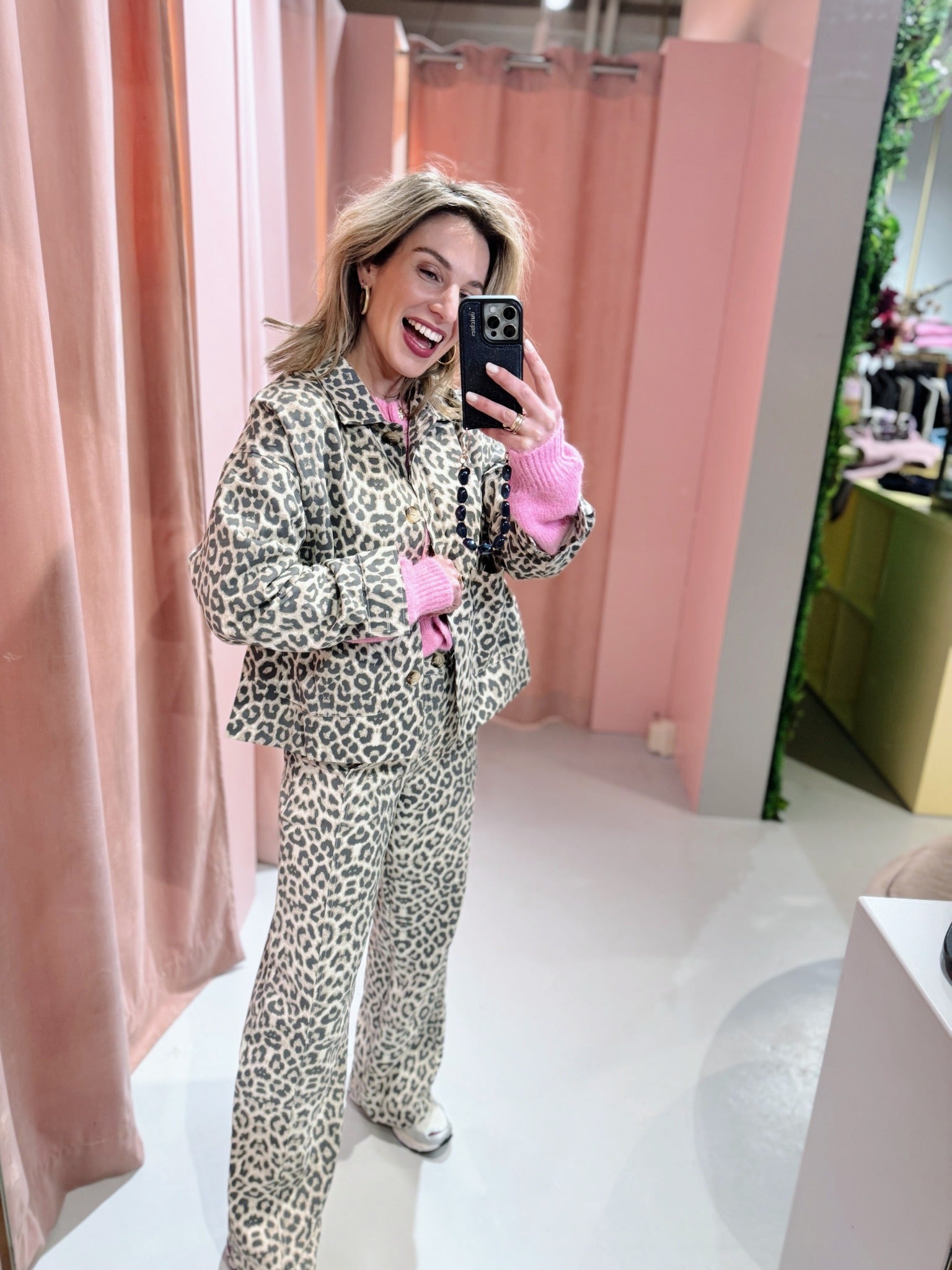 Deze te gekke broek is gemaakt van een stof met leopard print en heeft een wide leg model met een high-waist. De jeans heeft meerdere zakken en is voorzien van riemlusjes en een elastische achterkant. Je kunt de broek gemakkelijk sluiten door middel van een knoopsluiting. Deze broek is leuk te combineren met de matching Abby Blouse.