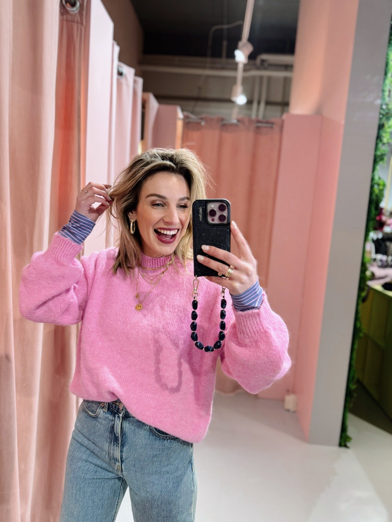De Alicia Knit in roze is gemaakt van een gebreid materiaal, waardoor hij heerlijk warm is. De sweater heeft lange mouwen, een ronde halslijn en is perfect voor de koude dagen!