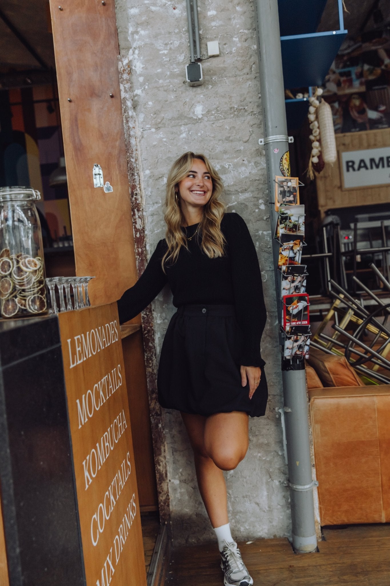 Ashley is 1,67m lang en draagt altijd maat S of S/M.