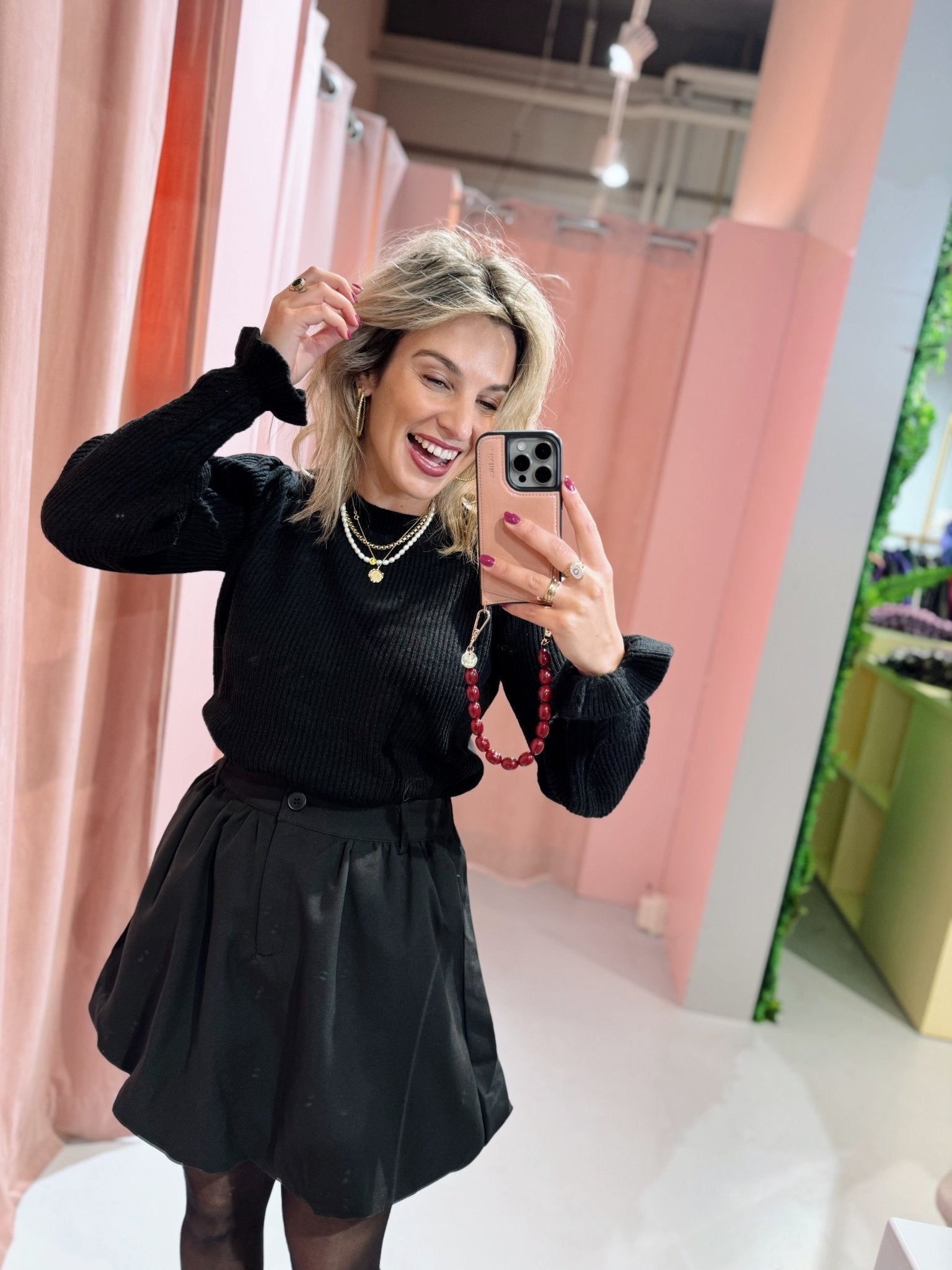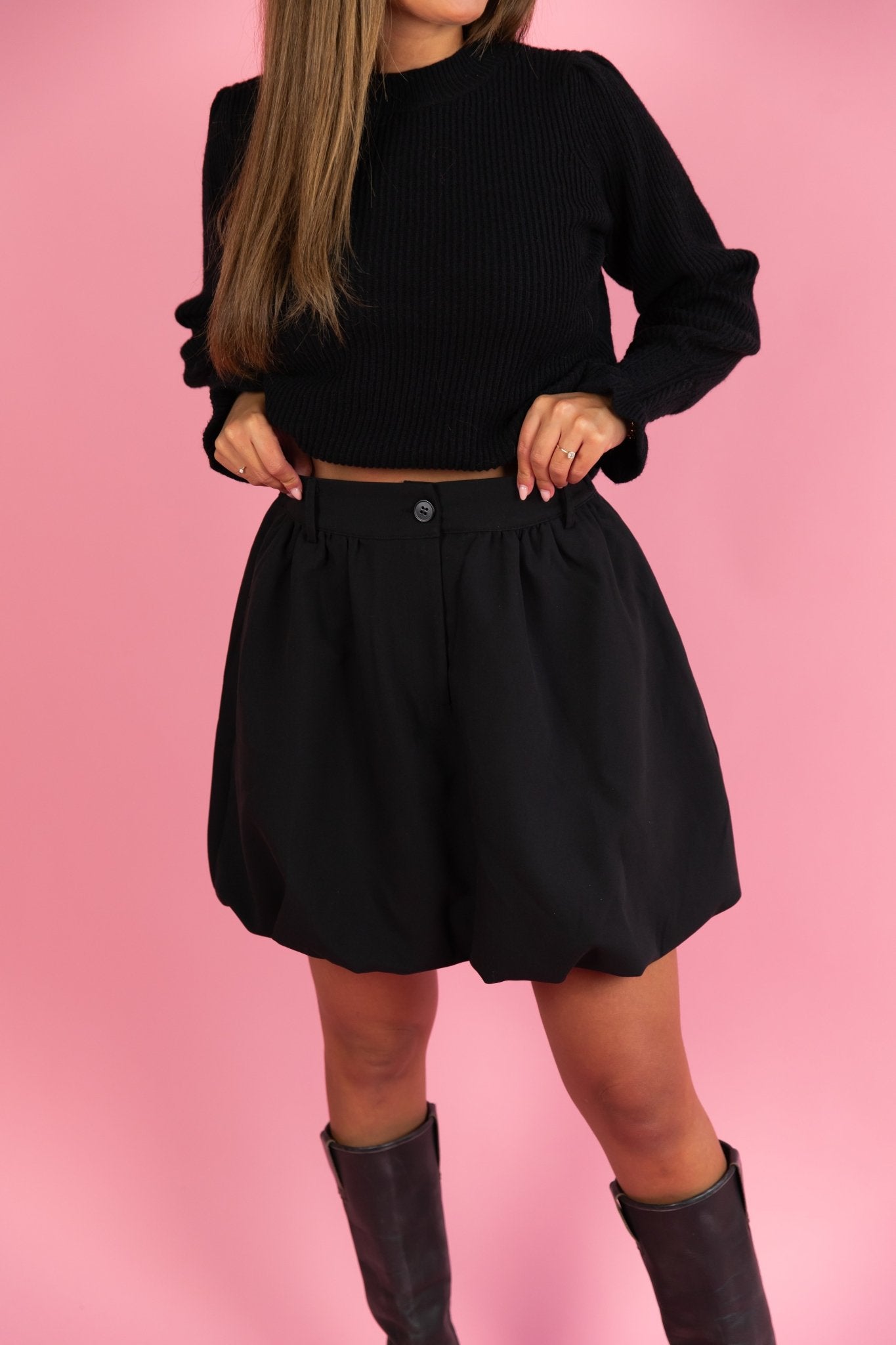 De Amaya Skirt in zwart is een kort ballon rokje en is voorzien van een knoopsluiting, riemlusjes en twee steekzakken. Combineer dit rokje met een blouse voor een nette outfit of juist met een oversized sweater voor een stoere look.