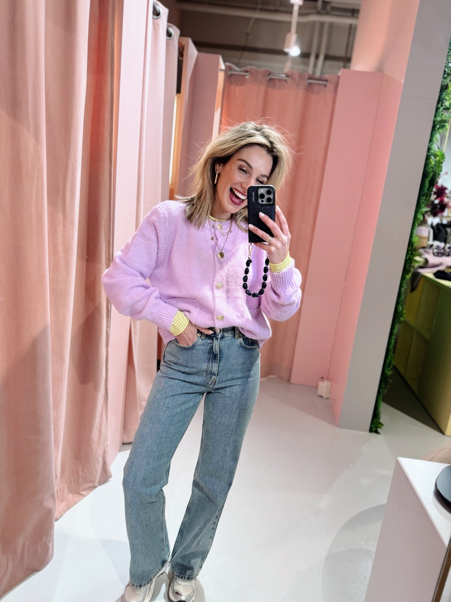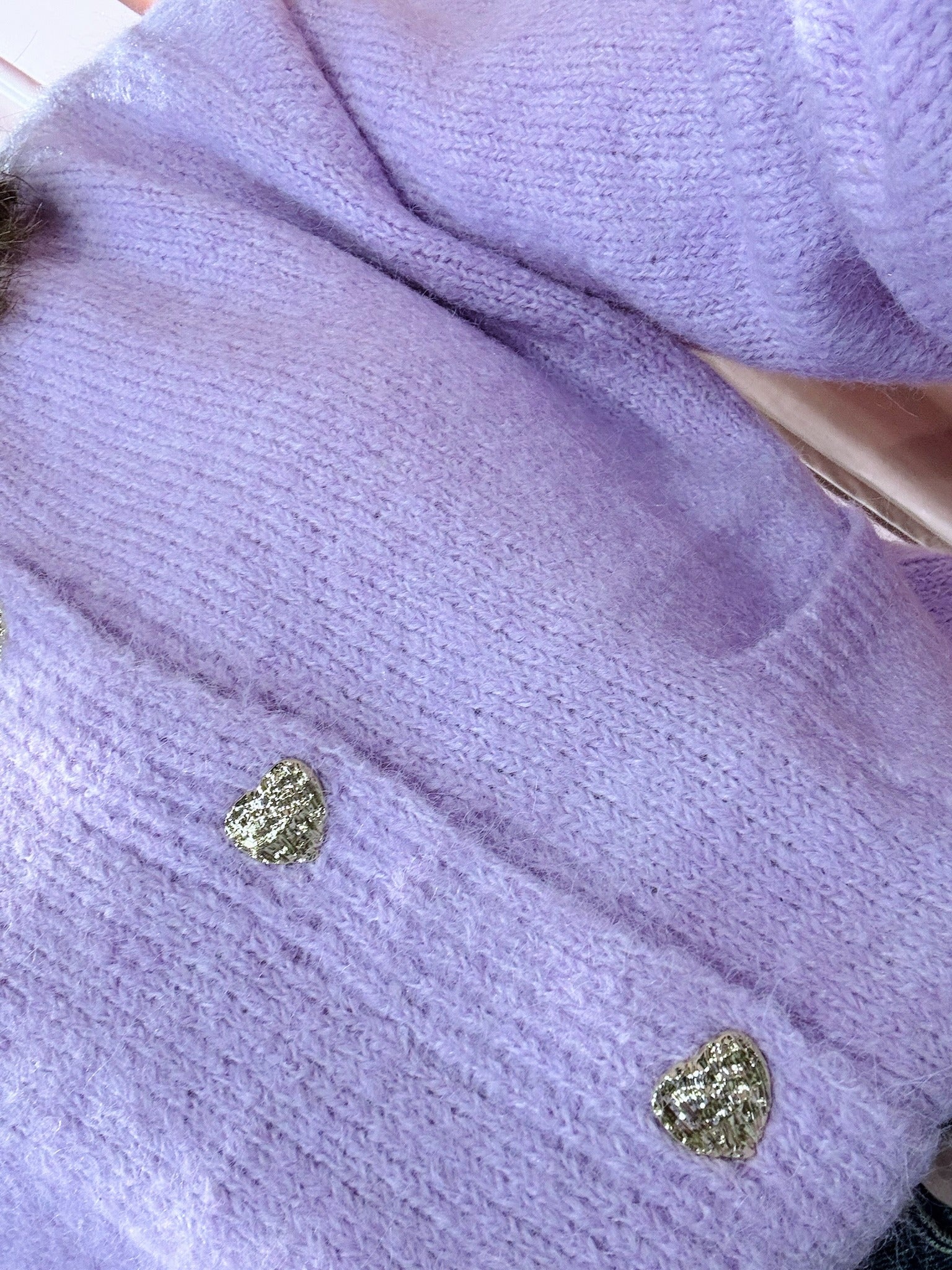De Ariana Cardigan in lila heeft een moderne boxy fit en is gemaakt van een zachte, gebreide stof die comfortabel aanvoelt. Het vest heeft lange mouwen, twee zakken, een ronde halslijn en is afgewerkt met goudkleurige, hartvormige knoopjes voor een subtiele, vrouwelijke touch.