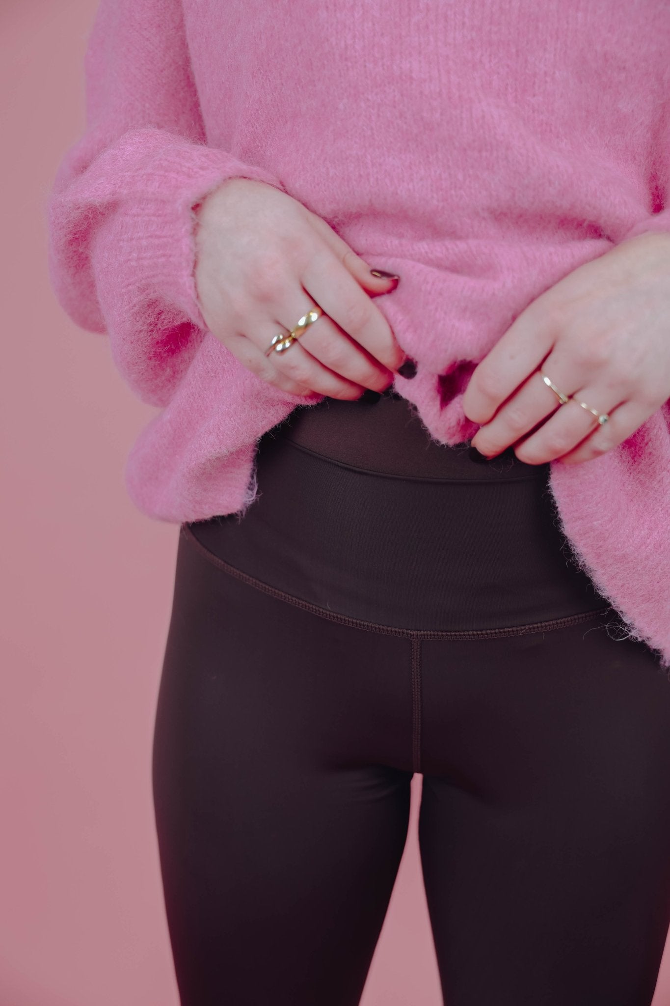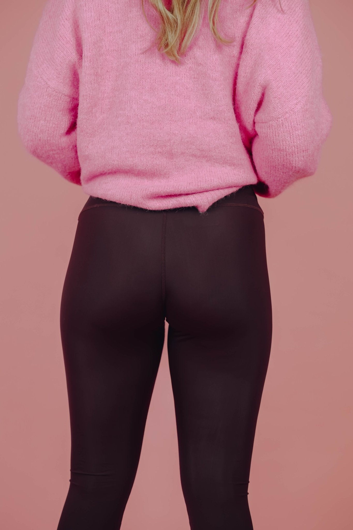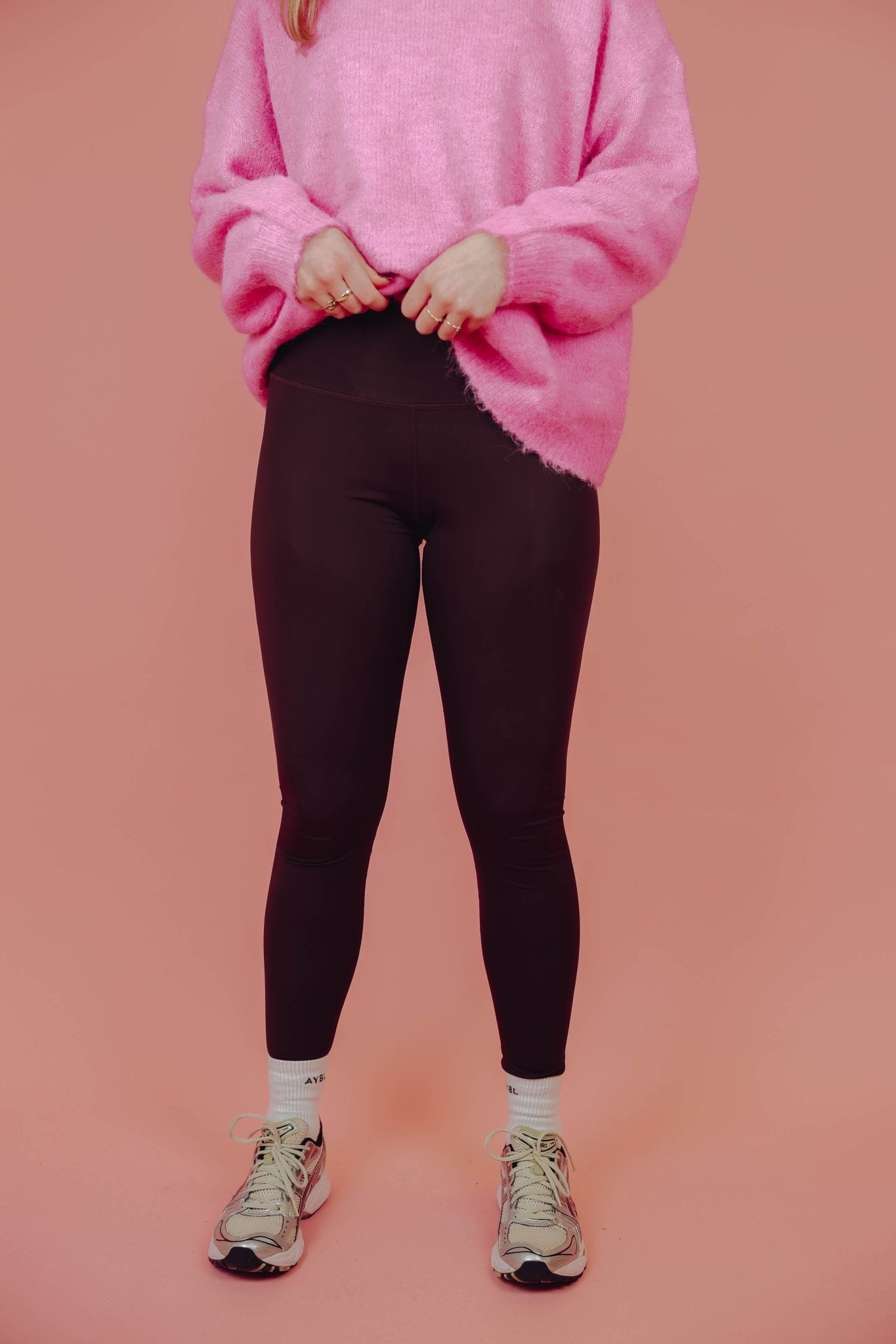 Deze bruine sportlegging is een fijne basic en een nieuw item in de collectie. De legging heeft een aangesloten pasvorm en is gemaakt van een soepele, stretchy stof die prettig meebeweegt. De hoge tailleband zorgt voor een comfortabele fit en blijft mooi op zijn plek tijdens het dragen.