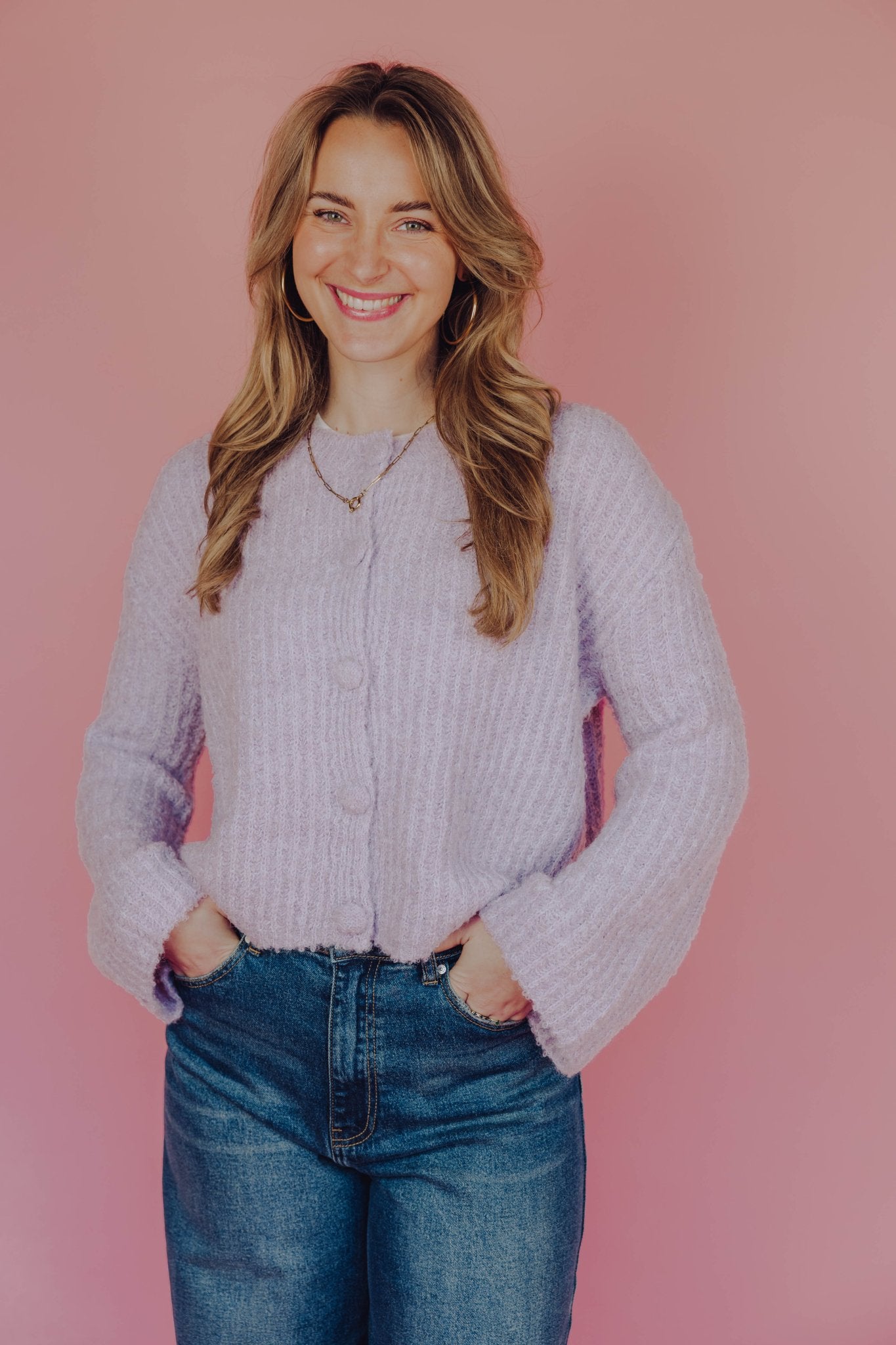 De Beau Cardigan in lila heeft een boxy fit en is gemaakt van een zachte, gebreide stof. Het vest heeft lange mouwen, een ronde hals en een knoopsluiting. Ideaal om te dragen in laagjes met het koude weer!