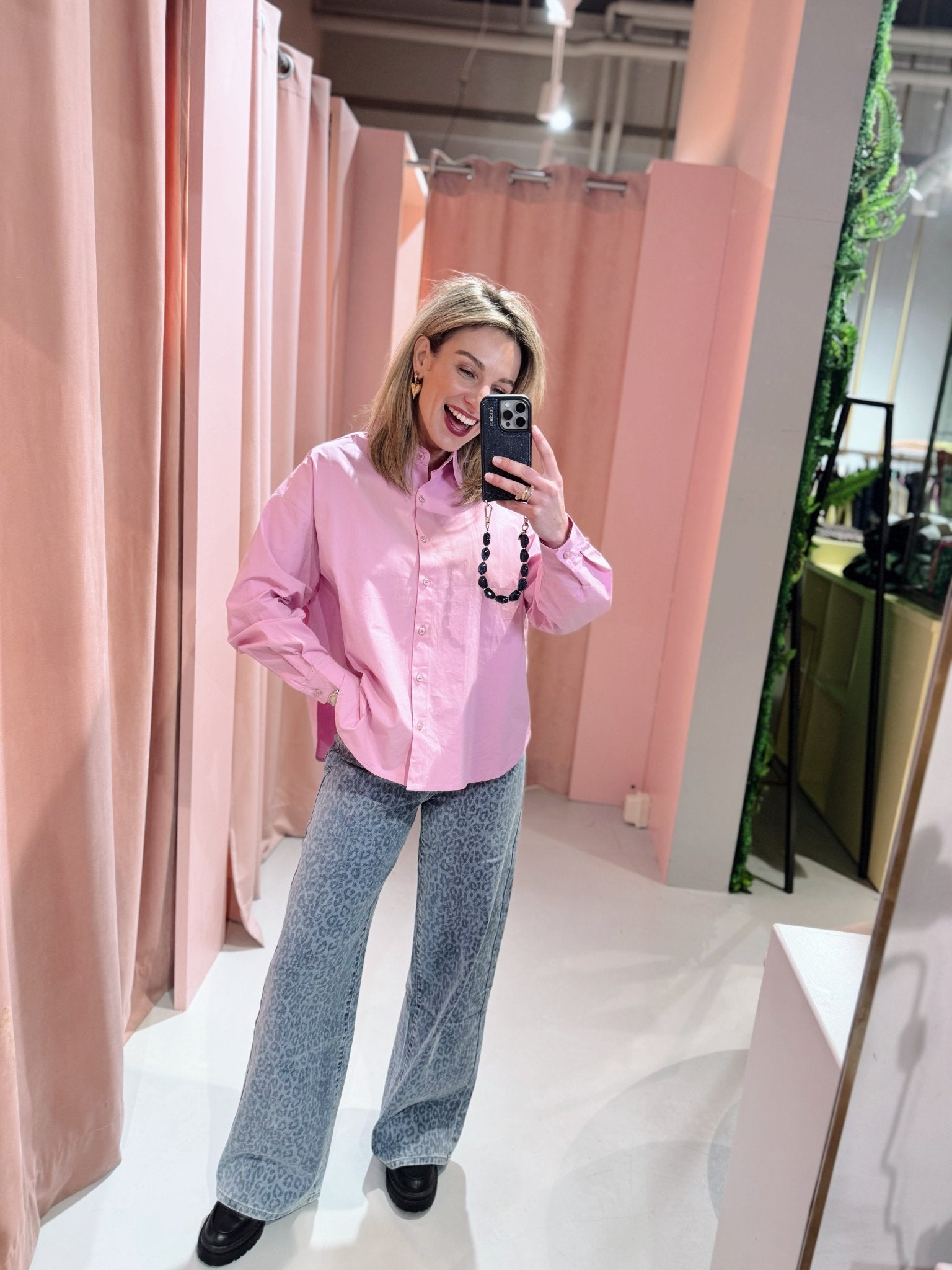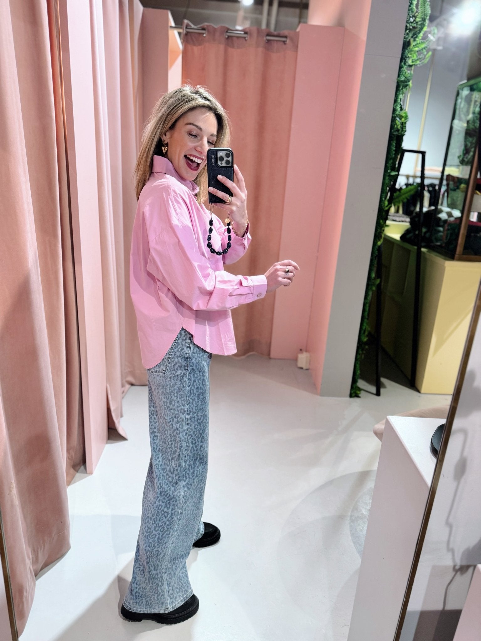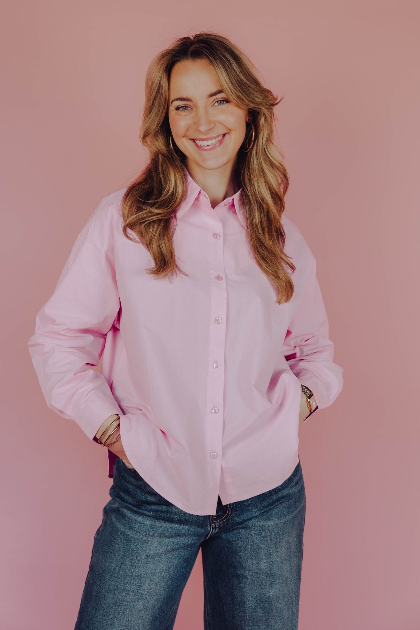 De Bibi Blouse in roze is gemaakt van een luchtige stof en is voorzien van lange mouwen en een kraagje. De blouse heeft een boxy fit en is gemakkelijk te sluiten door middel van de knoopsluiting aan de voorkant. De blouse is daarnaast ook voorzien van een knoop detail op de achterkant, wat hem een speelse twist geeft.