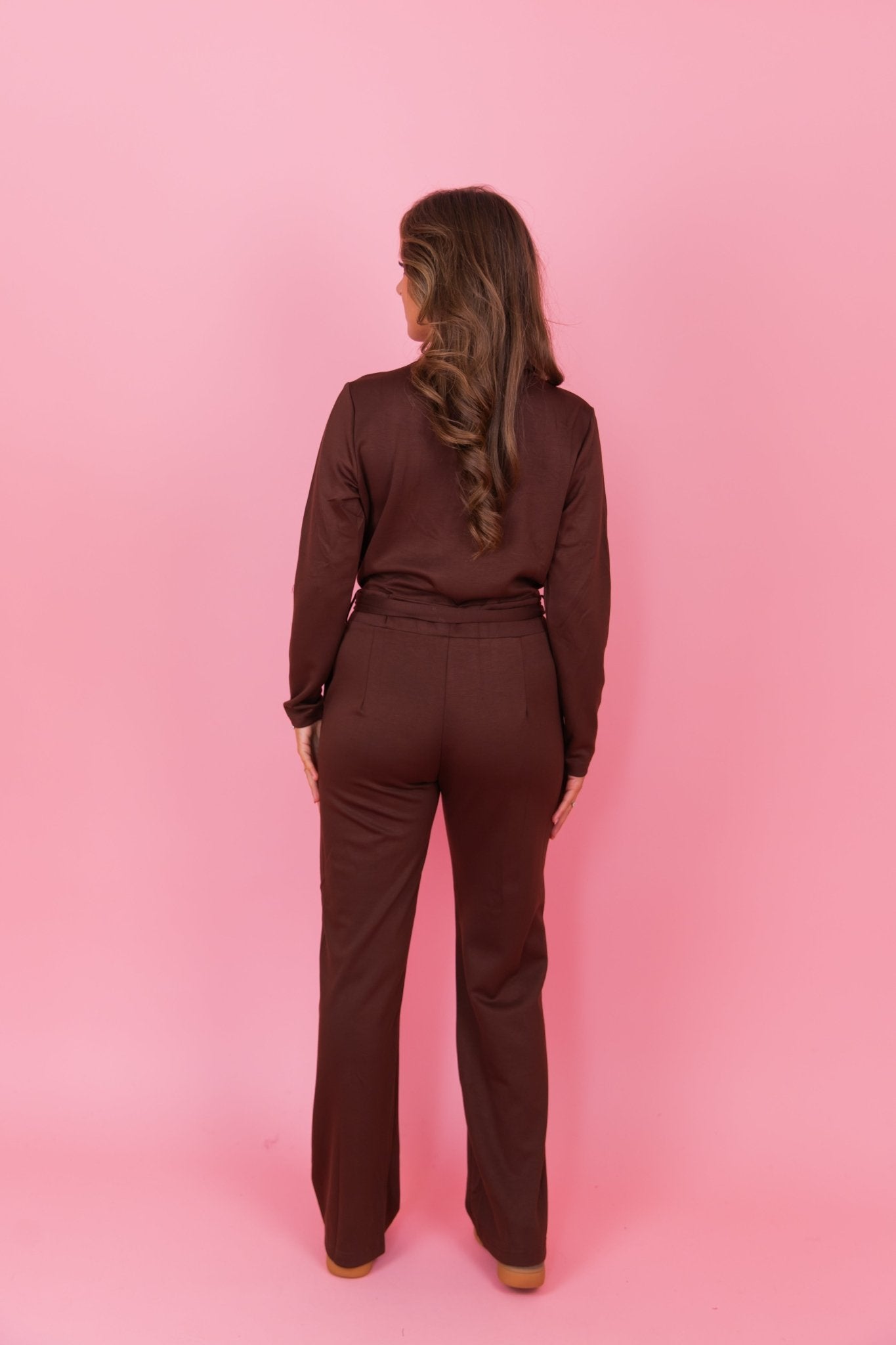 De Bliss Jumpsuit in bruin is een jumpsuit met een wide leg model. De jumpsuit heeft lange mouwen, steekzakken en een overslag V-hals. Daarnaast is de jumpsuit voorzien van een ceintuur met een gouden gesp, waardoor hij mooi tailleert. Bovendien sluit de jumpsuit mooi aan doordat hij veel stretch bevat.
