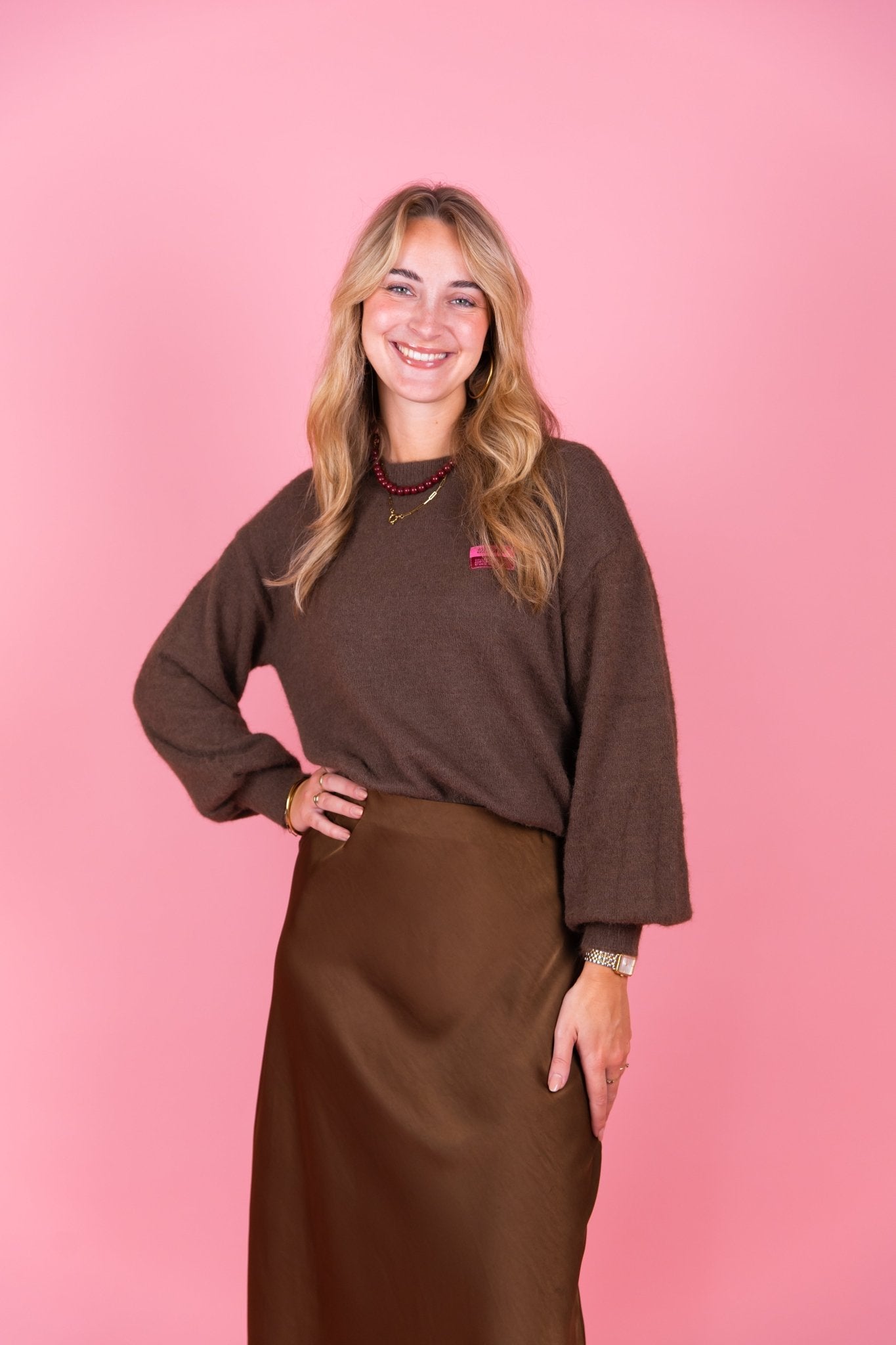 De Bonita Knit in bruin is gemaakt van een gebreid materiaal, waardoor hij heerlijk warm is. De trui heeft lange mouwen, een ronde halslijn en is voorzien van een patch op de borst. Combineer deze trui met een jeans voor een casual outfit.