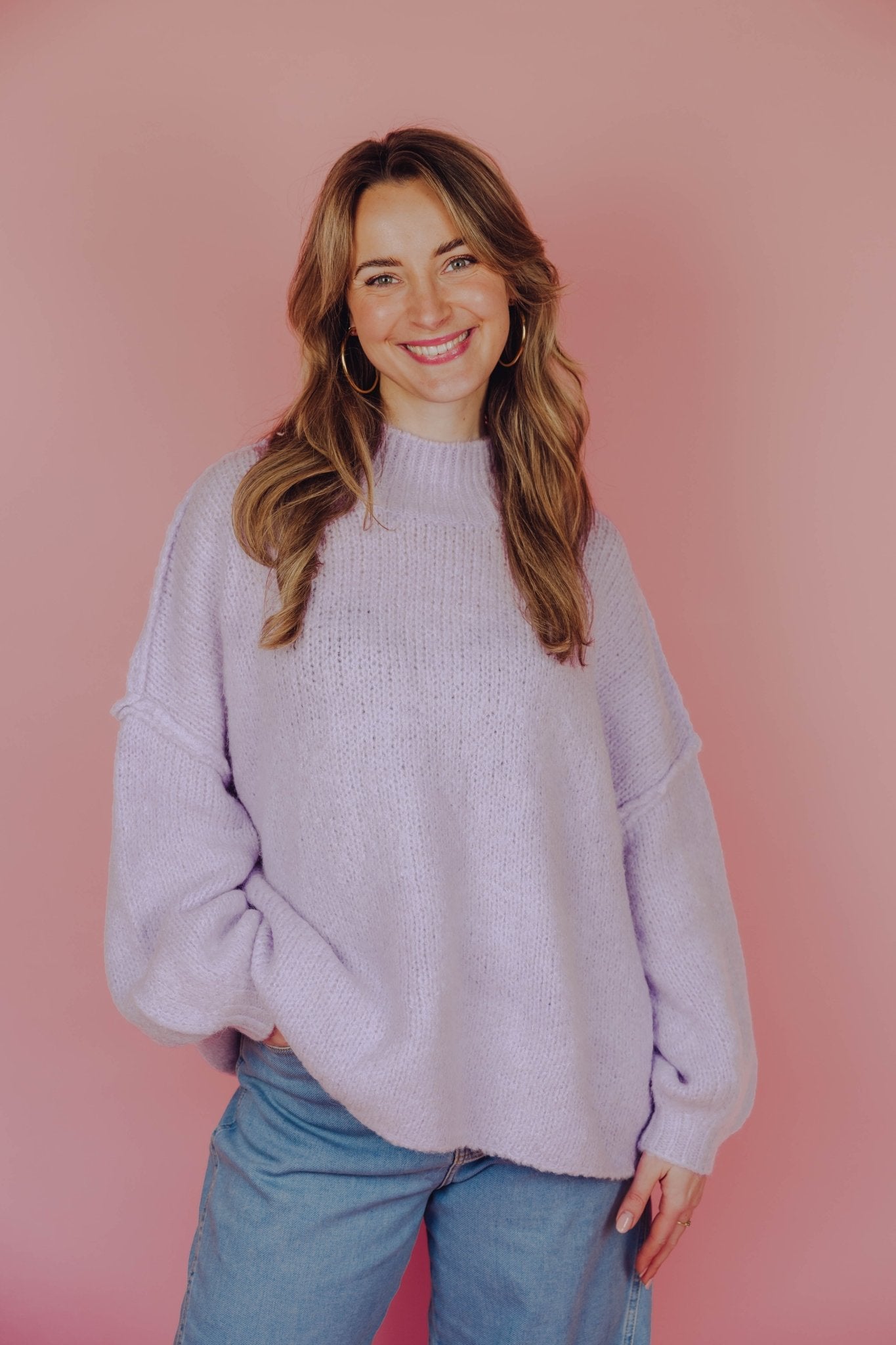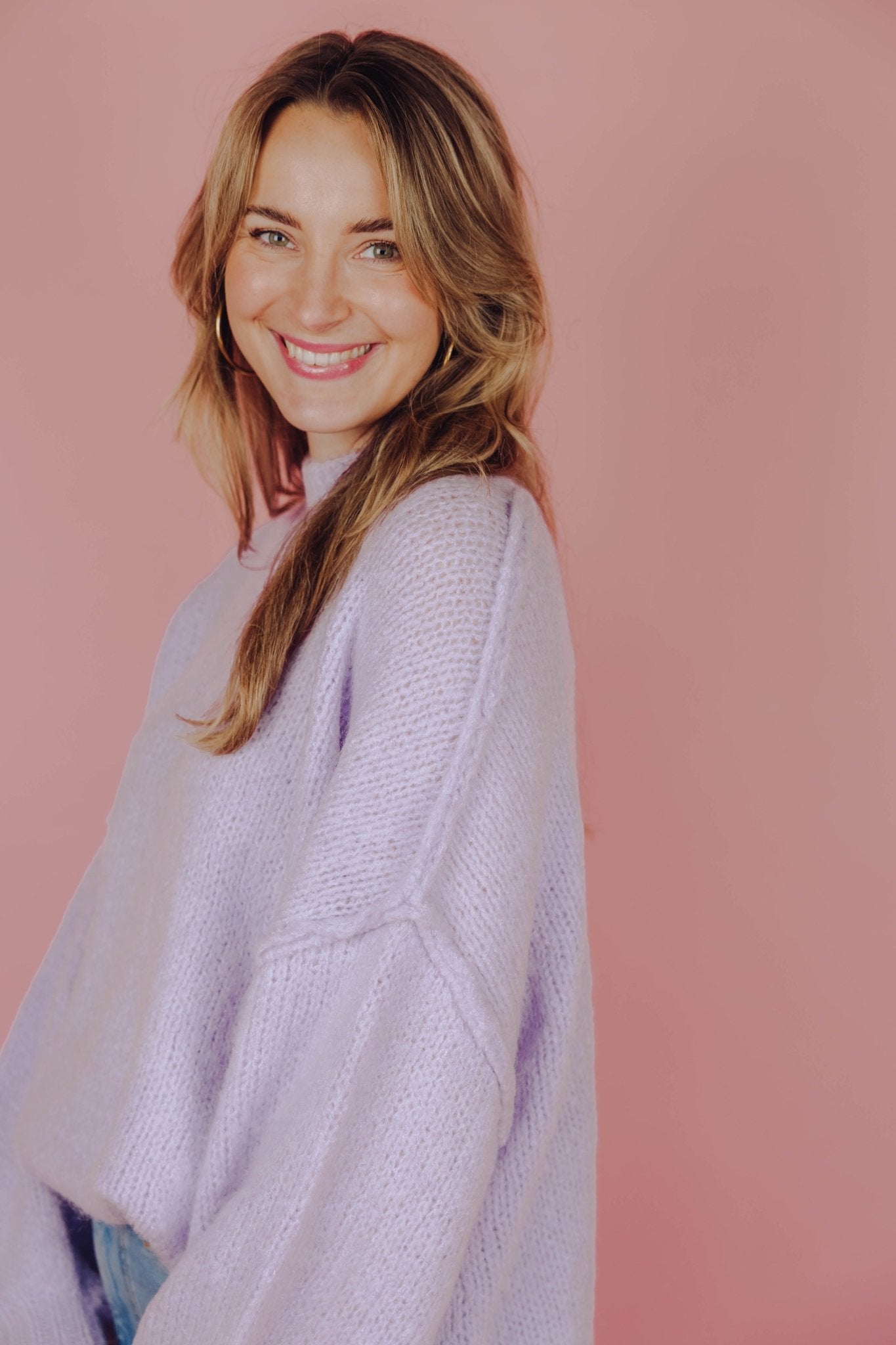 De Bonny Knit in lila is gemaakt van een gebreid materiaal, waardoor hij heerlijk warm is. De sweater heeft lange pofmouwen, een kleine col en is perfect voor de koude dagen!