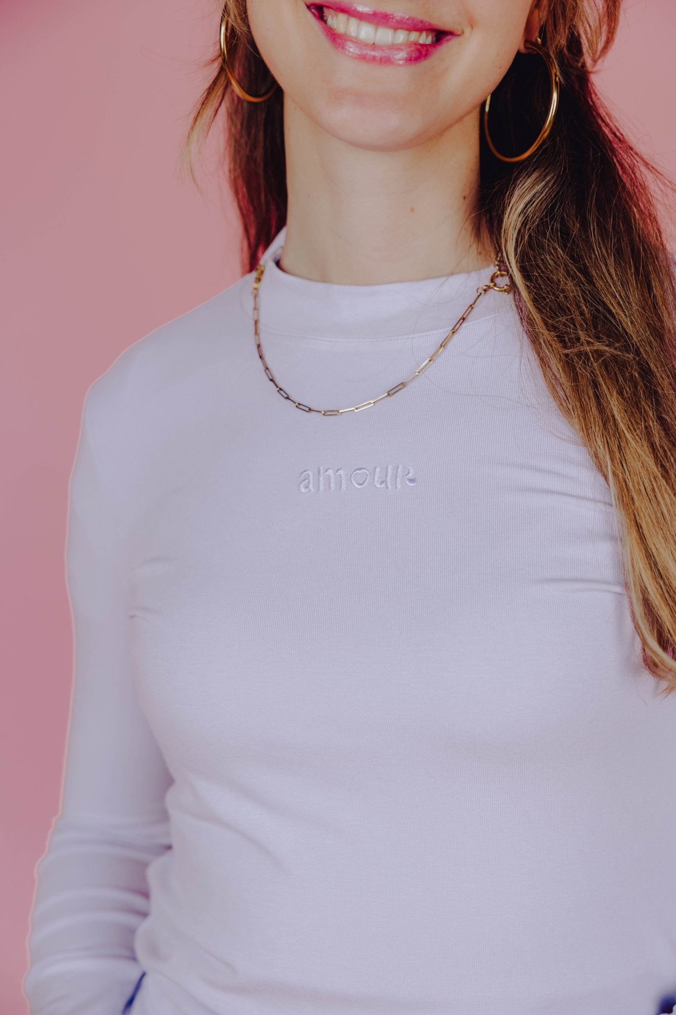 De Brianna Longsleeve in lila is een top met een aansluitend model. De top is gemaakt van een stretchy stof, heeft lange mouwen met een kleine col en de geborduurde tekst "Amour" op de borst. Deze lange mouwen top is perfect om laagjes mee te creëren in het najaar.