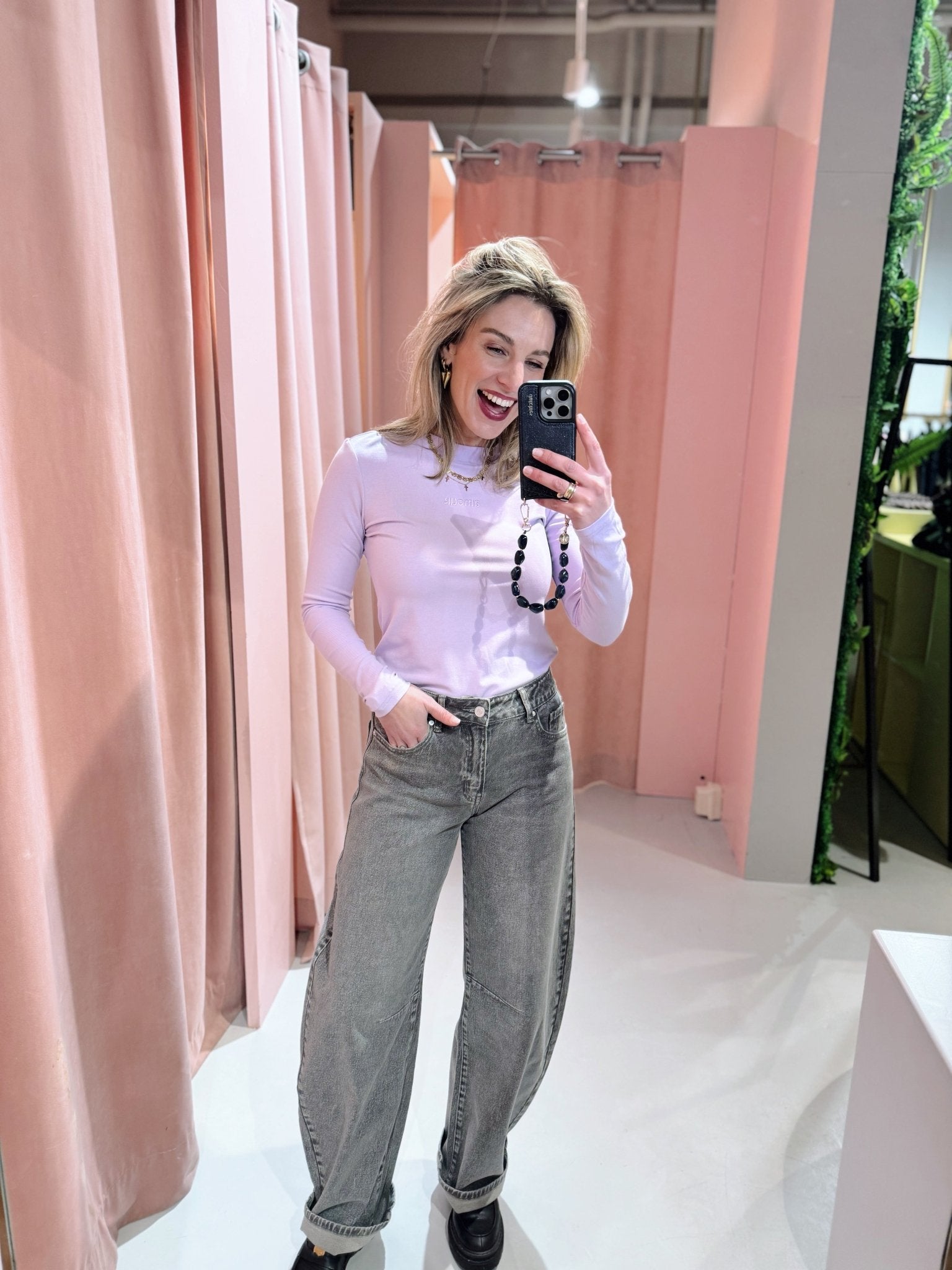 Jessica is 1,65m lang en draagt altijd maat S of S/M.
