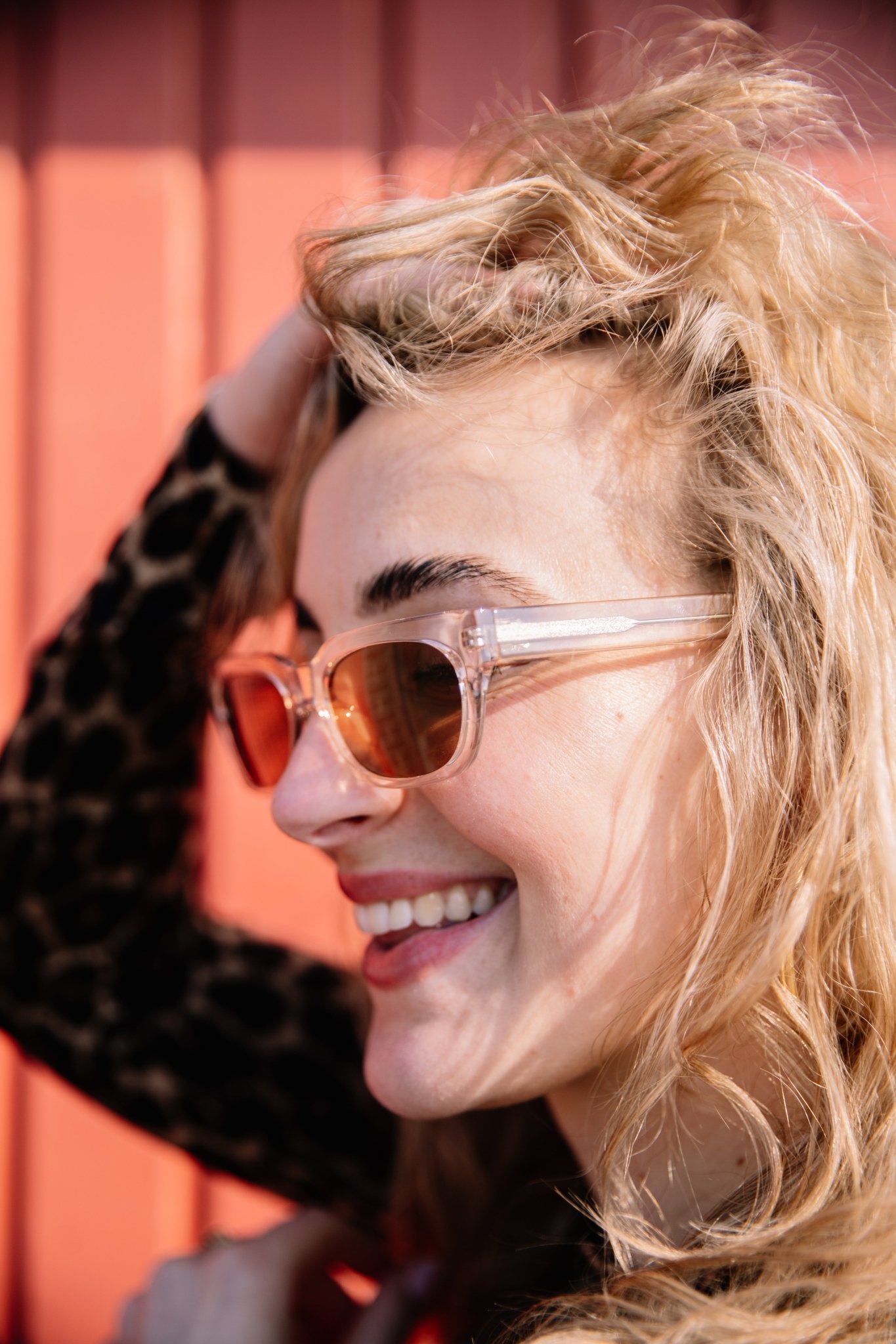 De Bror - Champagne zonnebril van A.KJAERBEDE heeft een transparant champagnekleurig montuur met een moderne uitstraling. De UV 400 bescherming en polycarbonaat lenzen zorgen voor optimale oogbescherming, terwijl de vervormbare pootjes met metalen kern en hoogwaardige scharnieren een stevige en comfortabele pasvorm garanderen. Gemaakt van meer dan 50% gerecycleerde materialen, BPA-vrij en geleverd met een reinigingszakje.