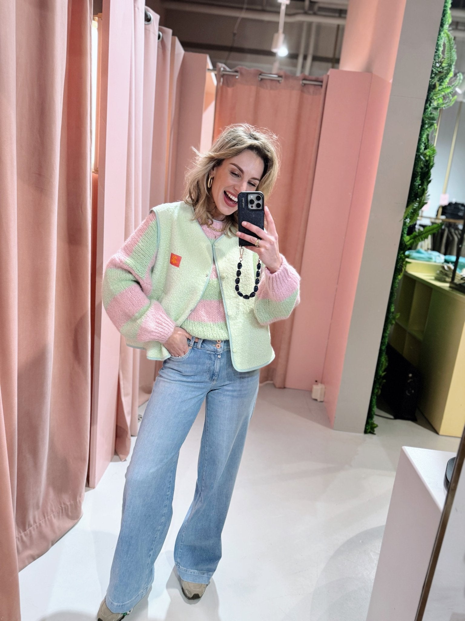 Het Carmen Teddy Gilet in mint is een zachte teddy bodywarmer en perfect voor de koude dagen. Het gilet is heerlijk warm en is voorzien van twee steekzakken en een knoopsluiting aan de voorkant. Op de linker borst zit een patch met de tekst “ouf of office”, wat zorgt voor een leuk en speels detail.