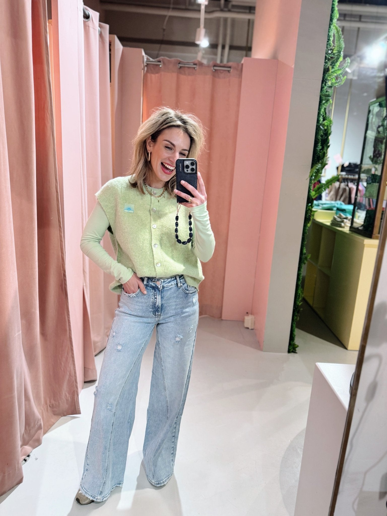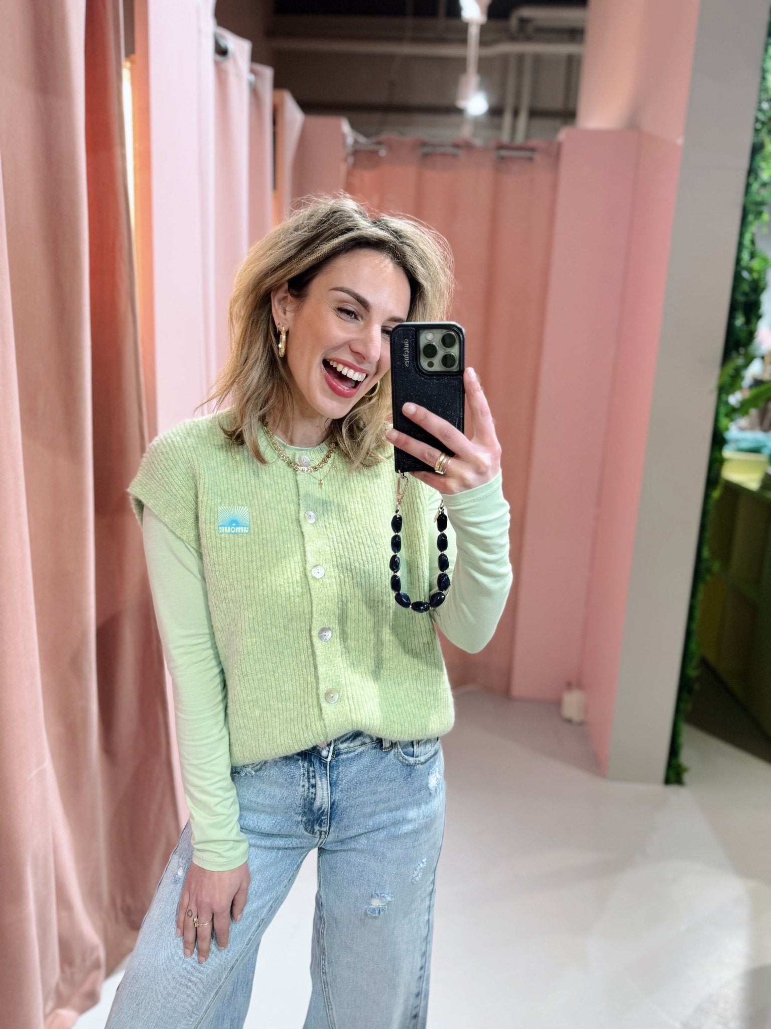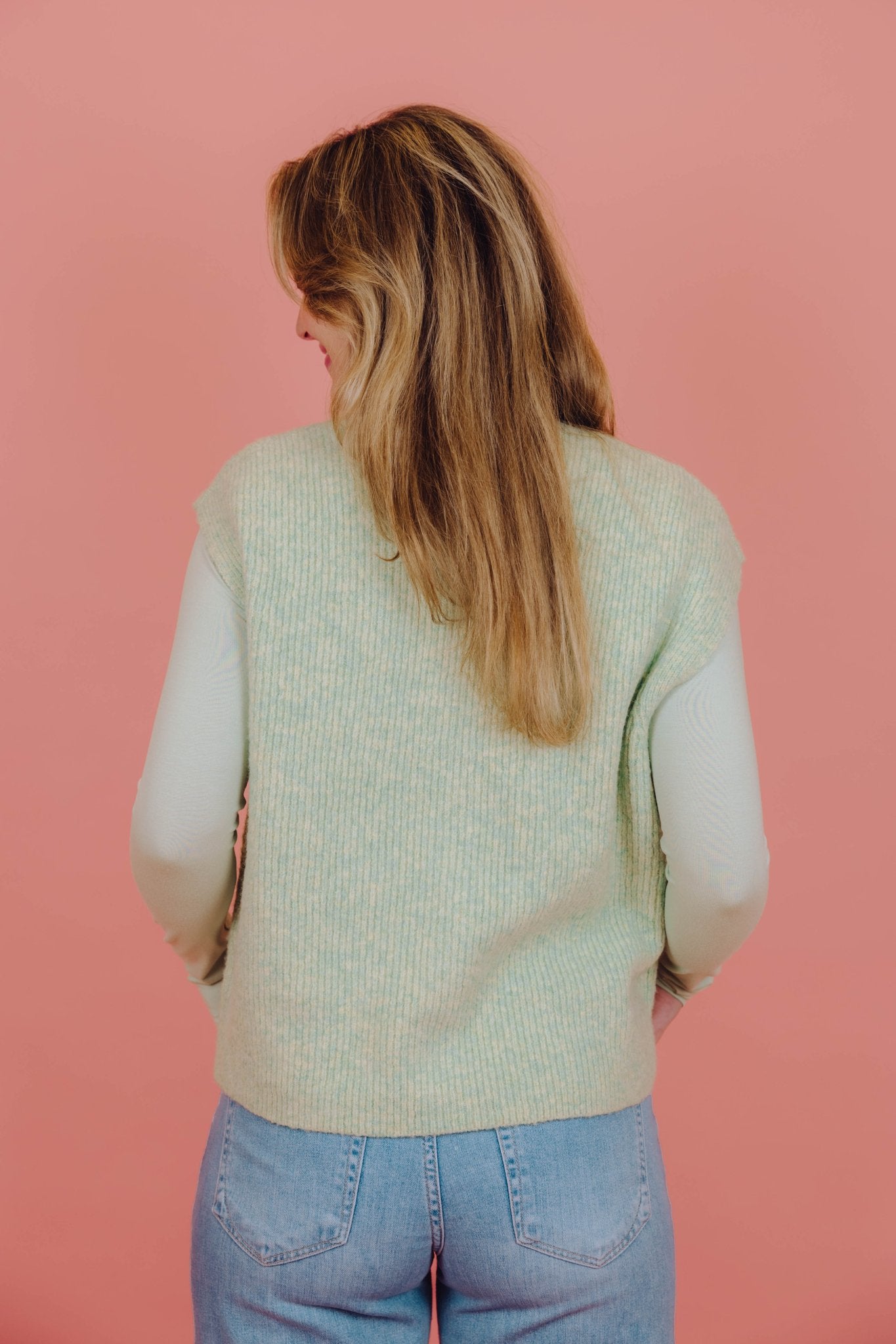 Het Celeste Gilet in groen is een gebreid gilet en perfect voor de koude dagen. Het gilet is heerlijk warm en is voorzien van een knoopsluiting aan de voorkant en een patch op de borst.