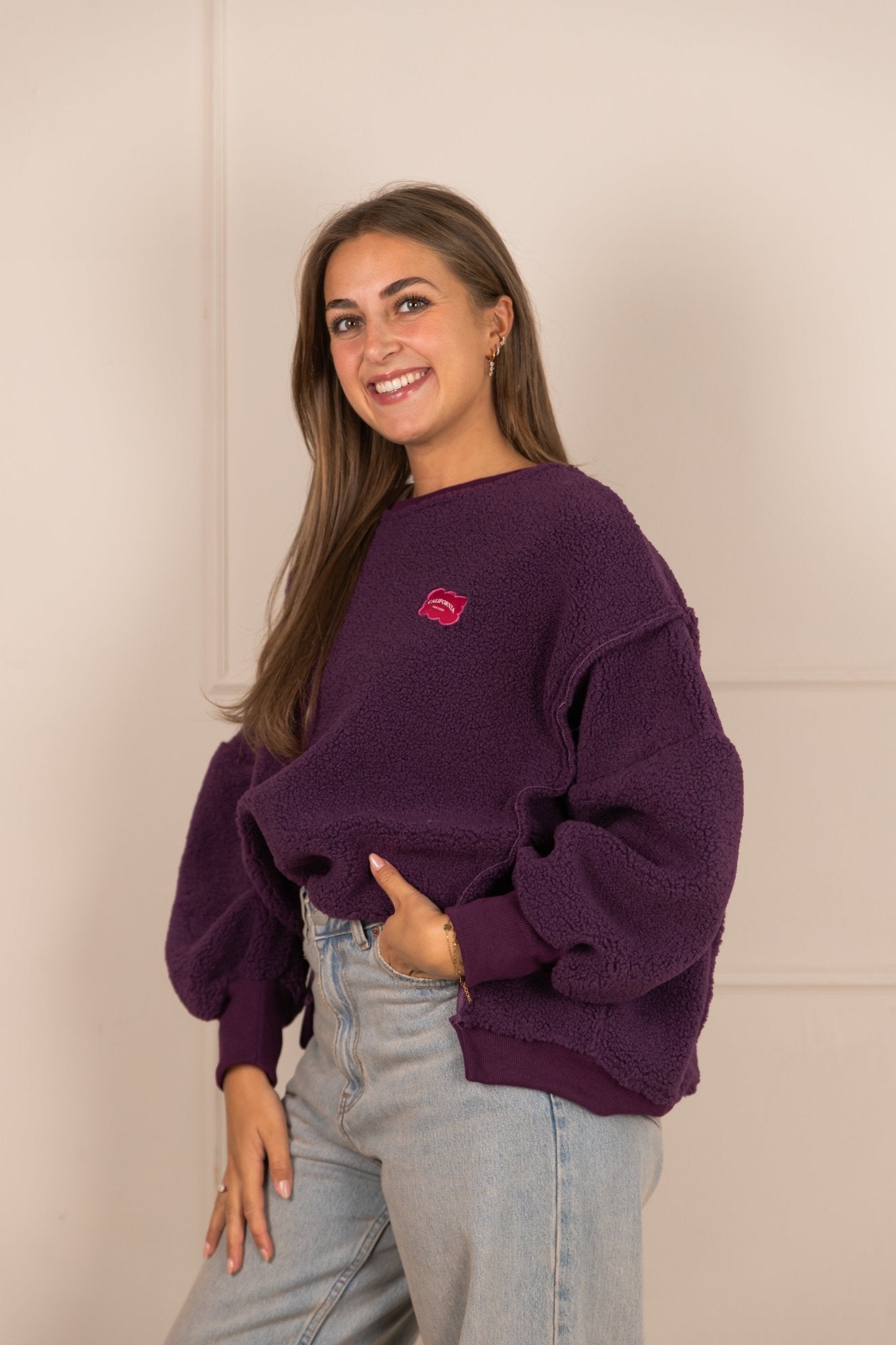 De Channah Teddy Sweater in paars is gemaakt van een zacht teddy stofje, waardoor hij heerlijk warm is. De trui heeft lange mouwen, een ronde halslijn en is voorzien van een patch op de borst. Combineer deze trui met een jeans voor een casual outfit.