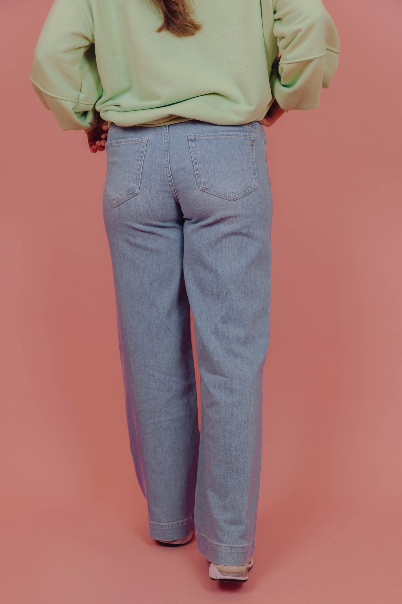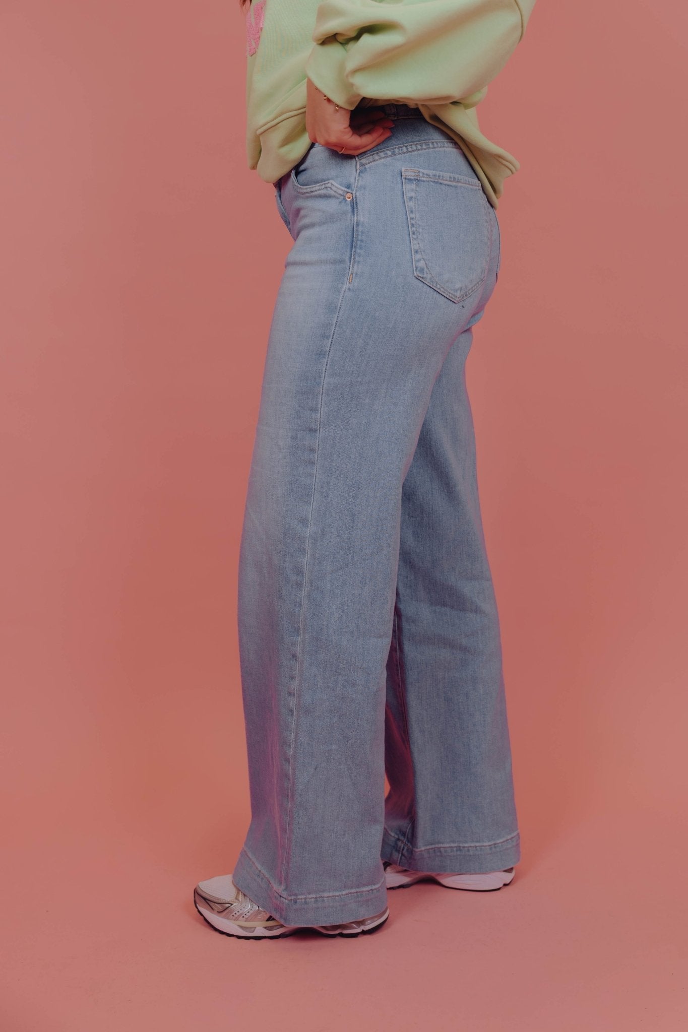 Ashley is 167 cm lang en draagt maat 27.