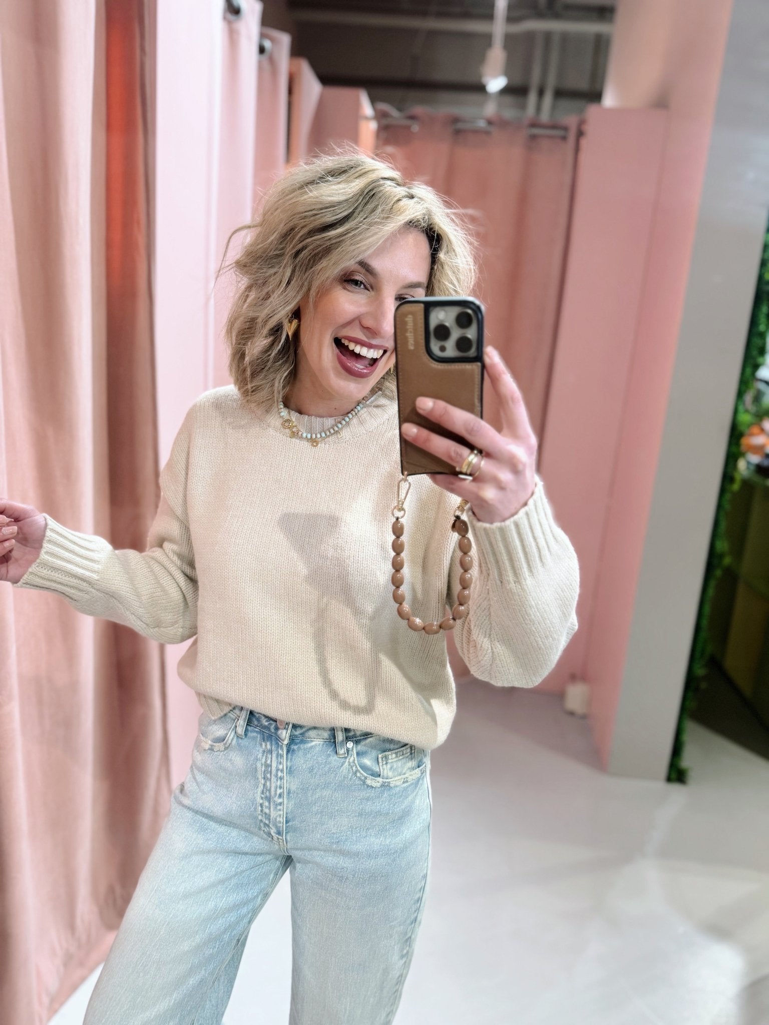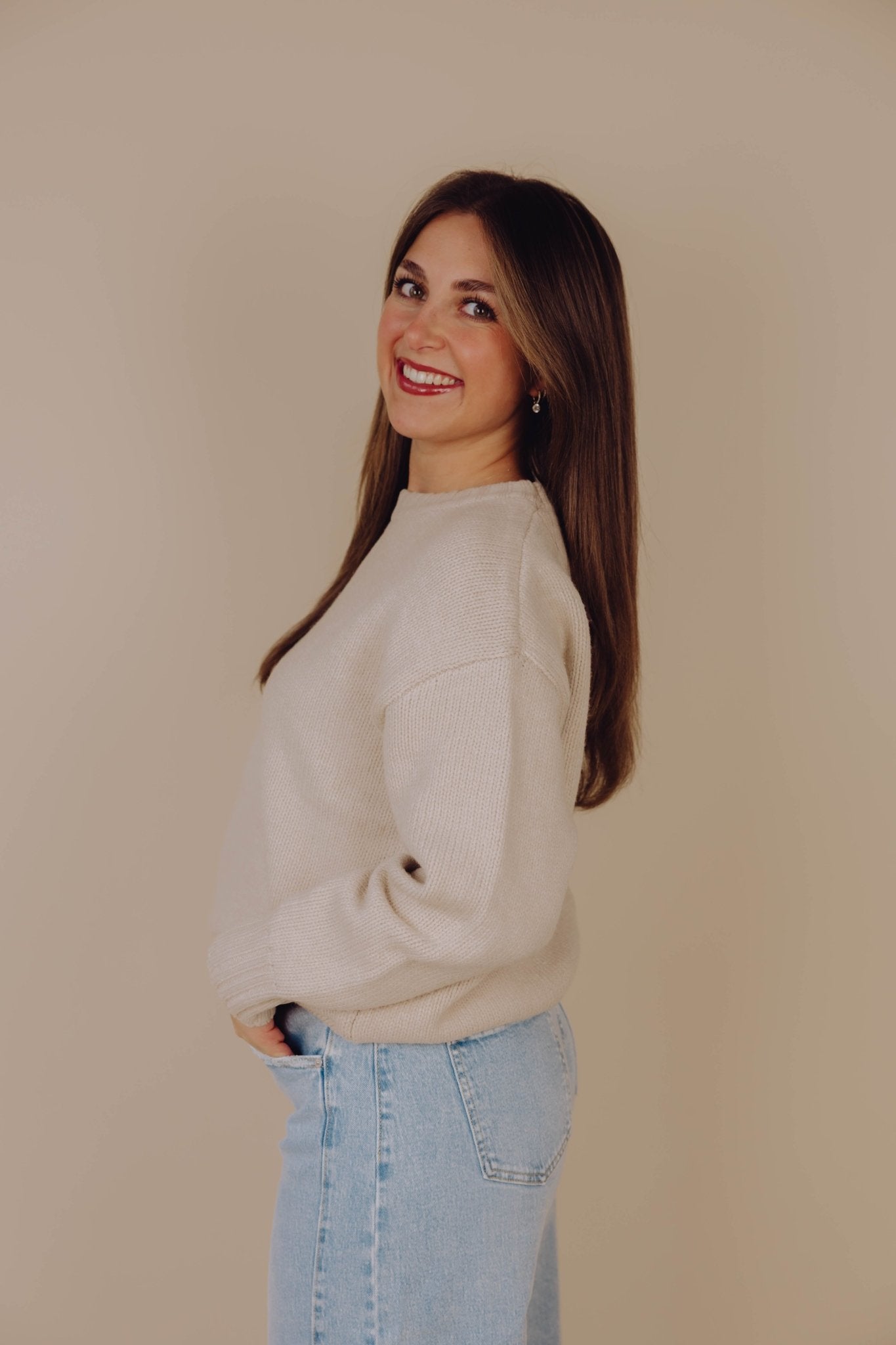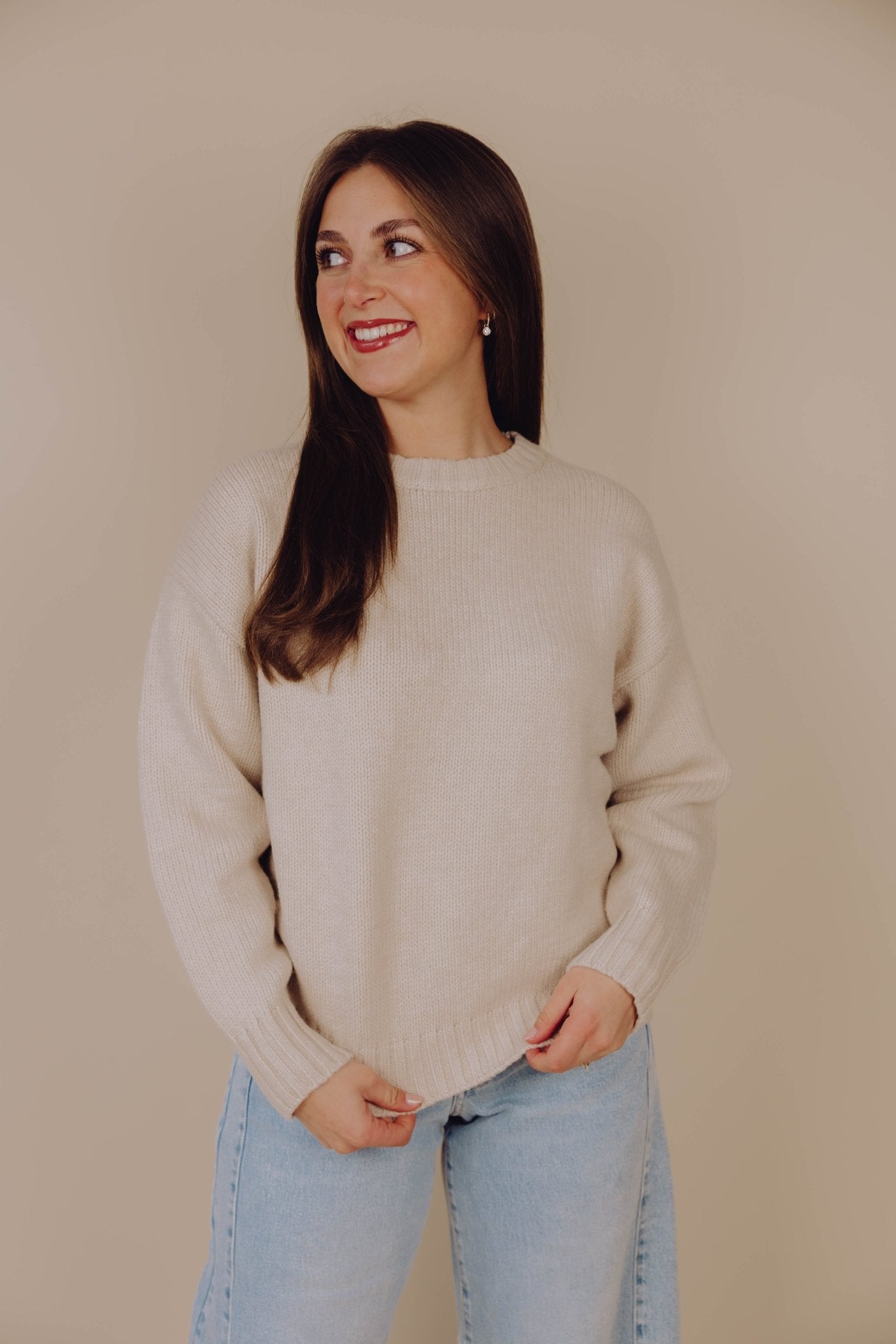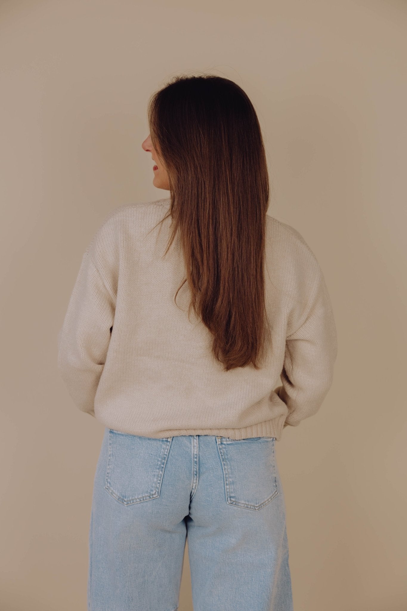 De Charlotte Knit in beige is een gebreide trui en heerlijk warm voor de koude winterdagen. De trui heeft lange mouwen met een hoge, ronde halslijn en is leuk te combineren met een jeans en een blouse of colletje.