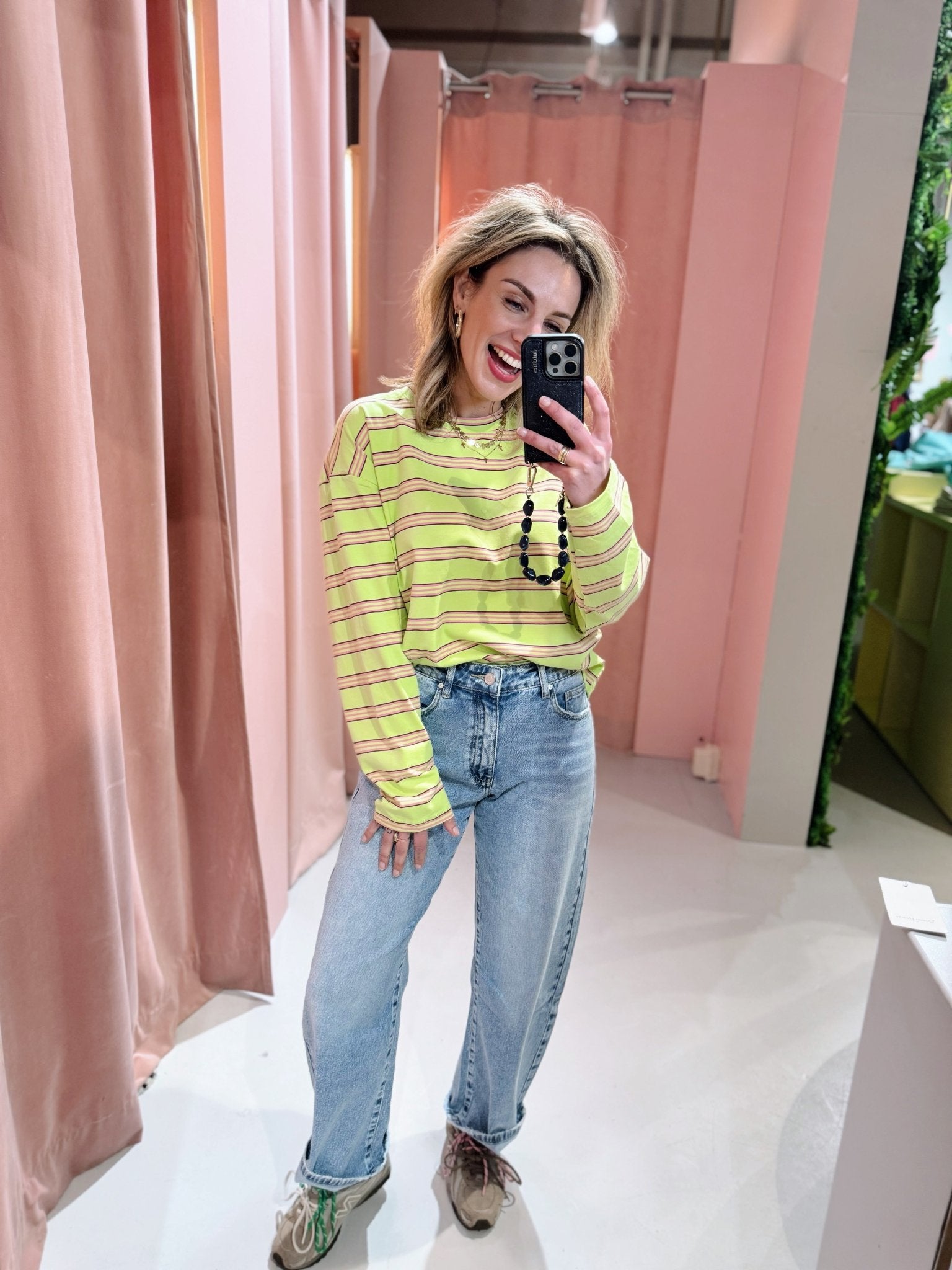 Jessica is 1,65m lang en draagt altijd maat S of S/M.