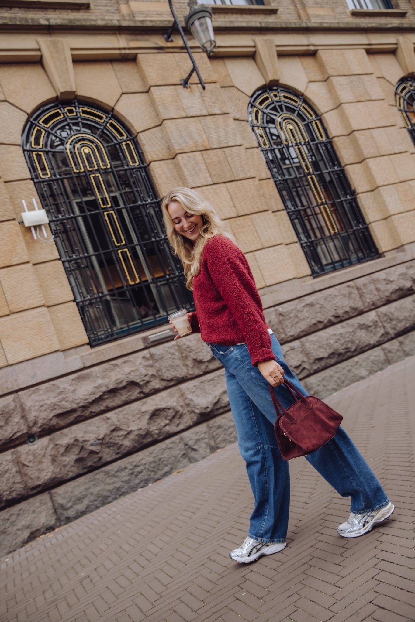 Amber is 175 cm lang en draagt maat 27.