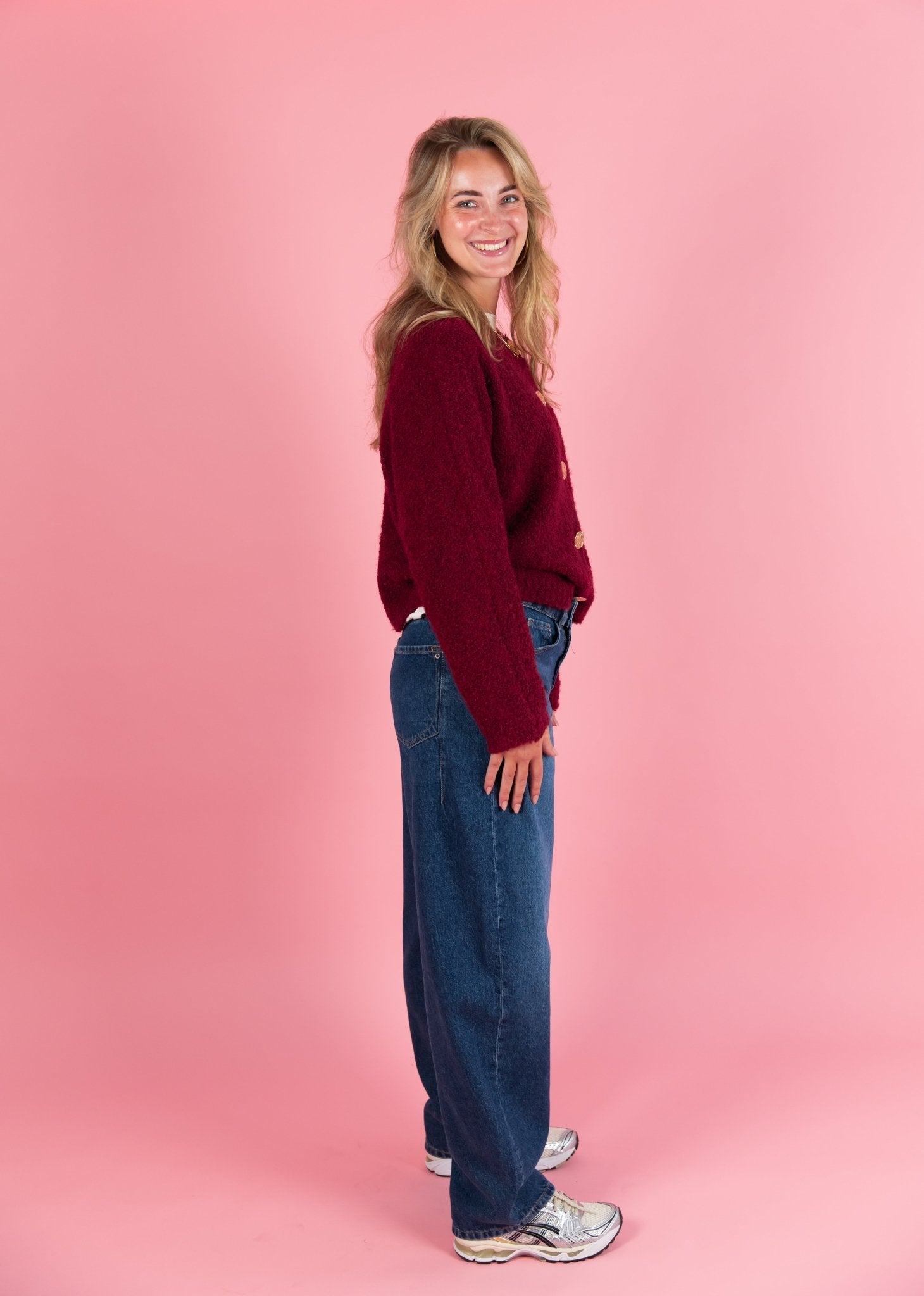 De Clara Jeans in medium blue heeft een mid waist en een balloon fit pasvorm. De broek valt recht en wijd over de benen en heeft een lange lengte. Het klassieke 5-pocket ontwerp zorgt voor een praktische indeling. De jeans is gemaakt van 100% katoen, waardoor de stof stevig aanvoelt en zijn vorm behoudt.