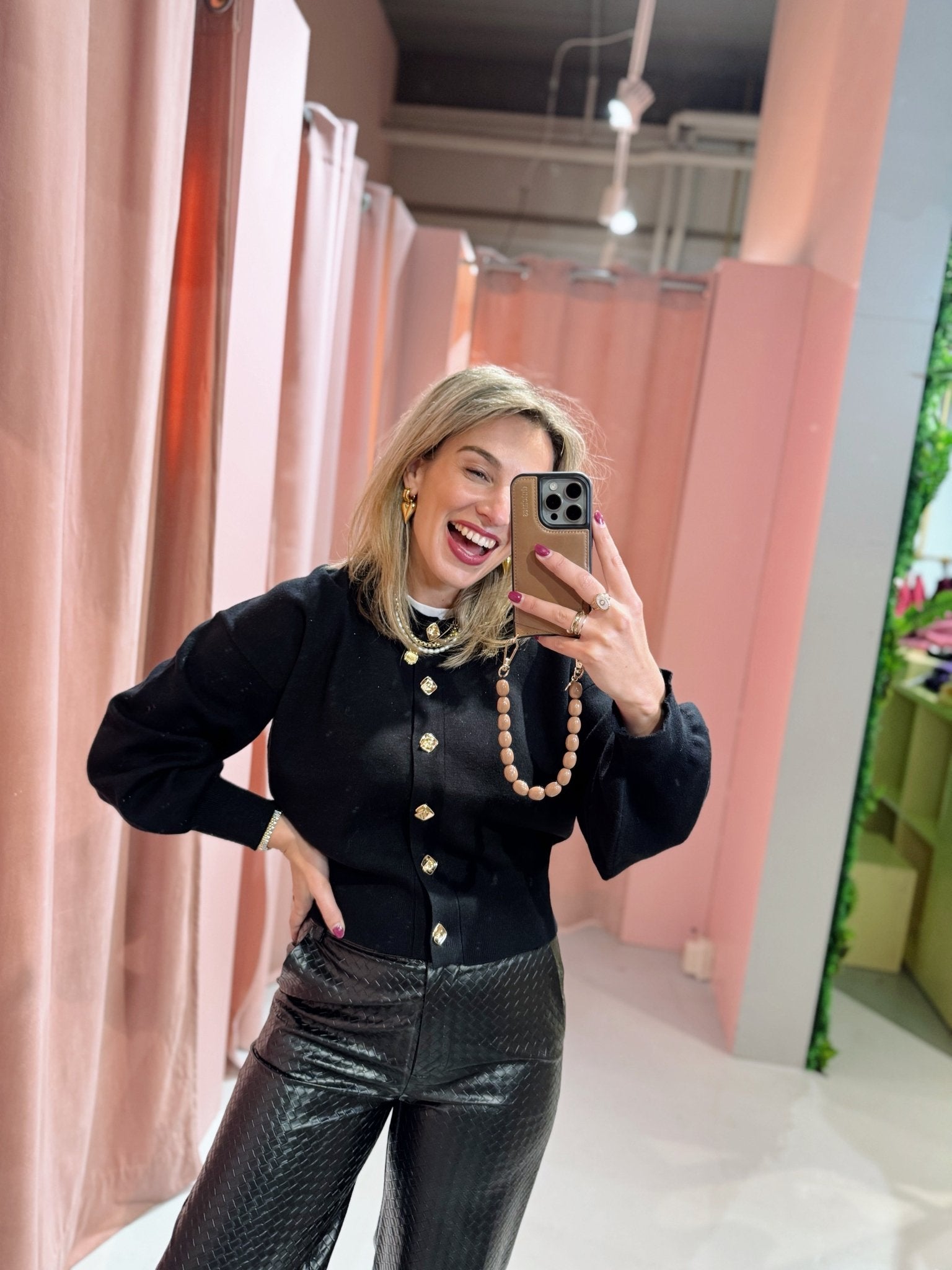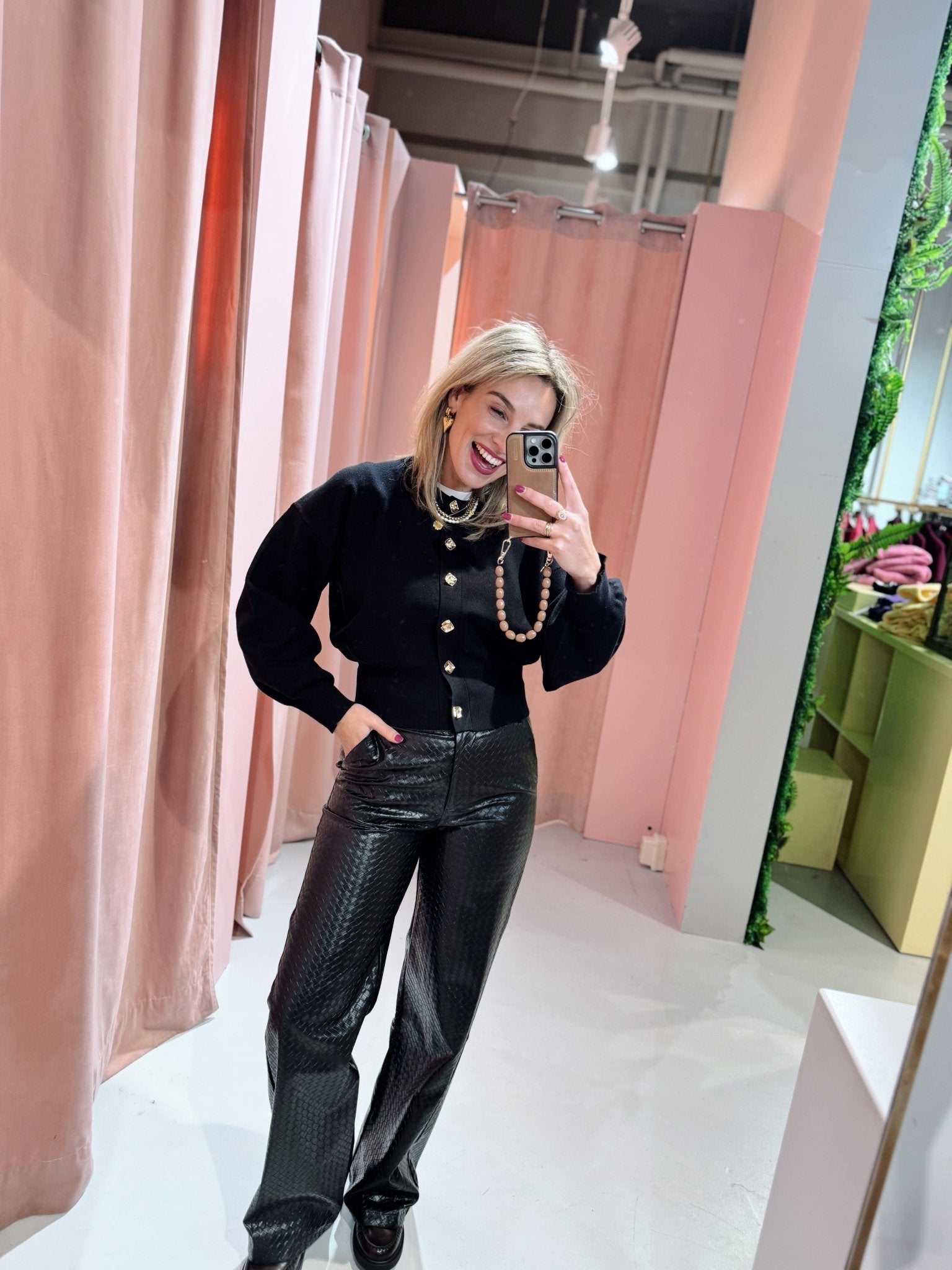 De Davita Cardigan in zwart is gemaakt van een gebreid materiaal, waardoor hij heerlijk warm is! Het vestje heeft lange pofmouwen, een ronde halslijn en is afgewerkt met gouden statement knopen aan de voorkant.