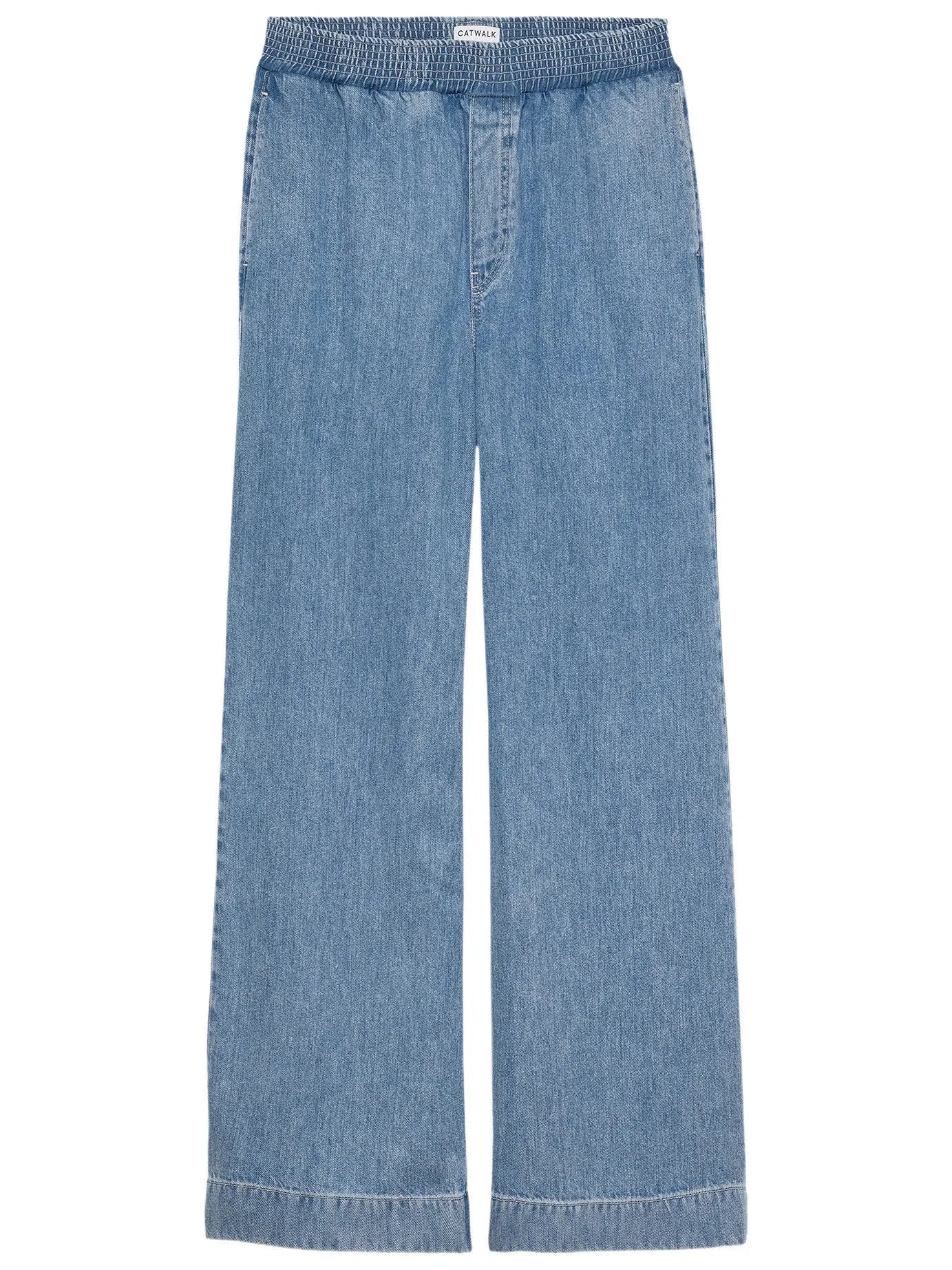 Deze wide leg denim jogger heeft een losse pasvorm en is voorzien van een elastische tailleband voor extra draagcomfort. De wide leg pijpen zorgen voor een relaxte look, terwijl de denim stof het item een stoere uitstraling geeft. De broek zit soepel en biedt veel bewegingsvrijheid, ideaal voor elke dag.