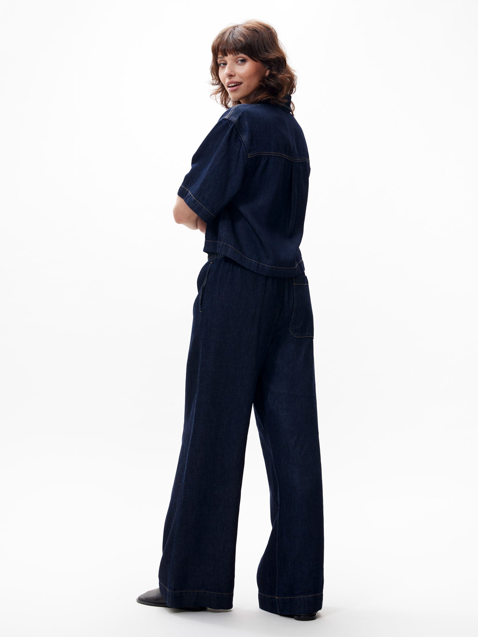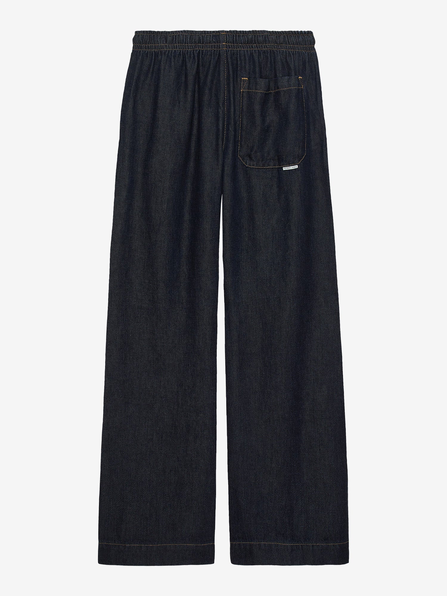 Deze jogger van Catwalk Junkie is de perfecte mix van stijl en comfort! Deze jogger is gemaakt van zachte lyocell stof met een donkerblauwe denimlook. De broek heeft wijde pijpen en een elastische taille met aantrekkoord.