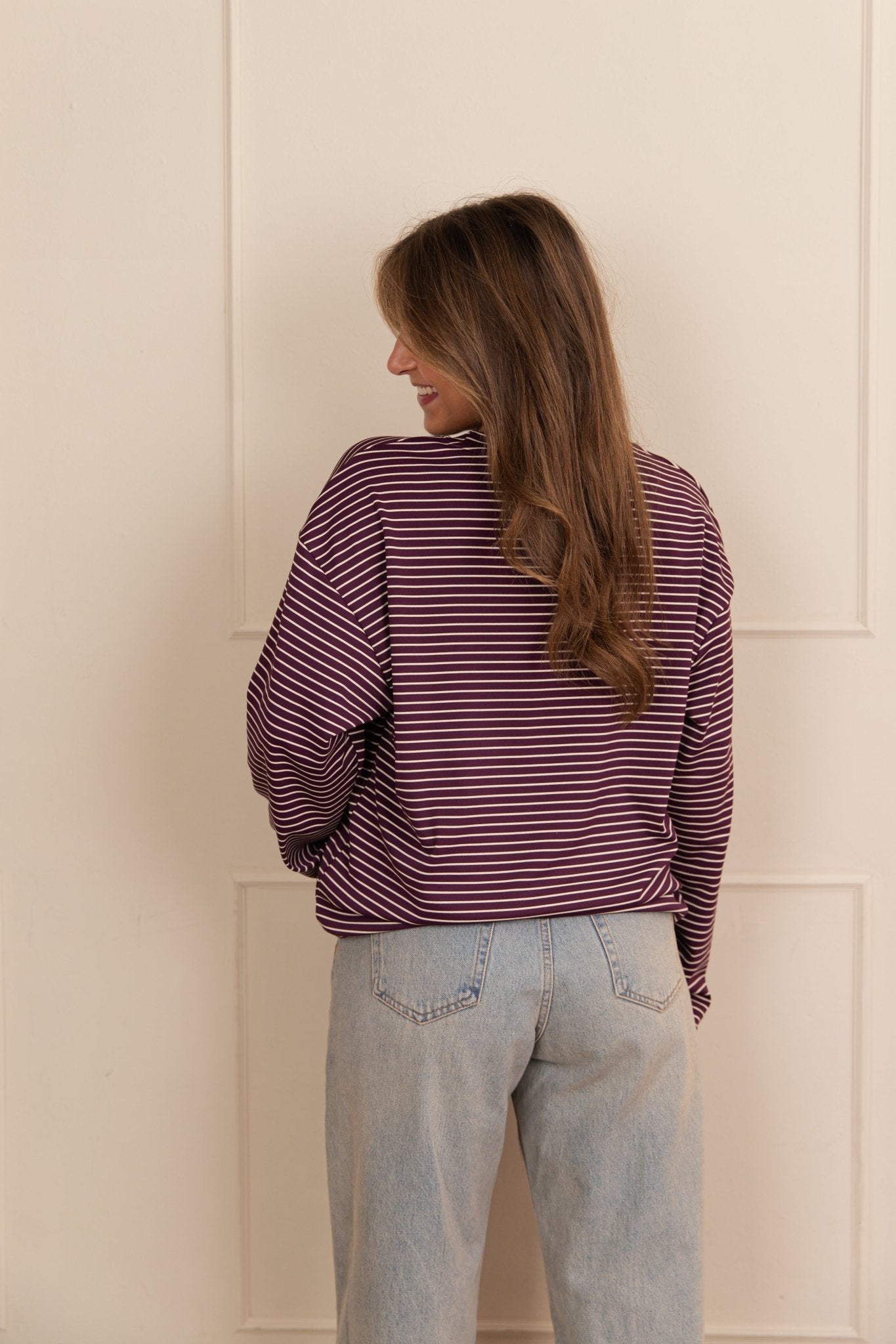 De Desi Longsleeve is een top met een oversized model. De top is gemaakt van een zachte stof, heeft lange mouwen met een hoge, ronde halslijn en een streep patroon. Deze lange mouwen top is perfect om laagjes mee te creëren in het najaar.