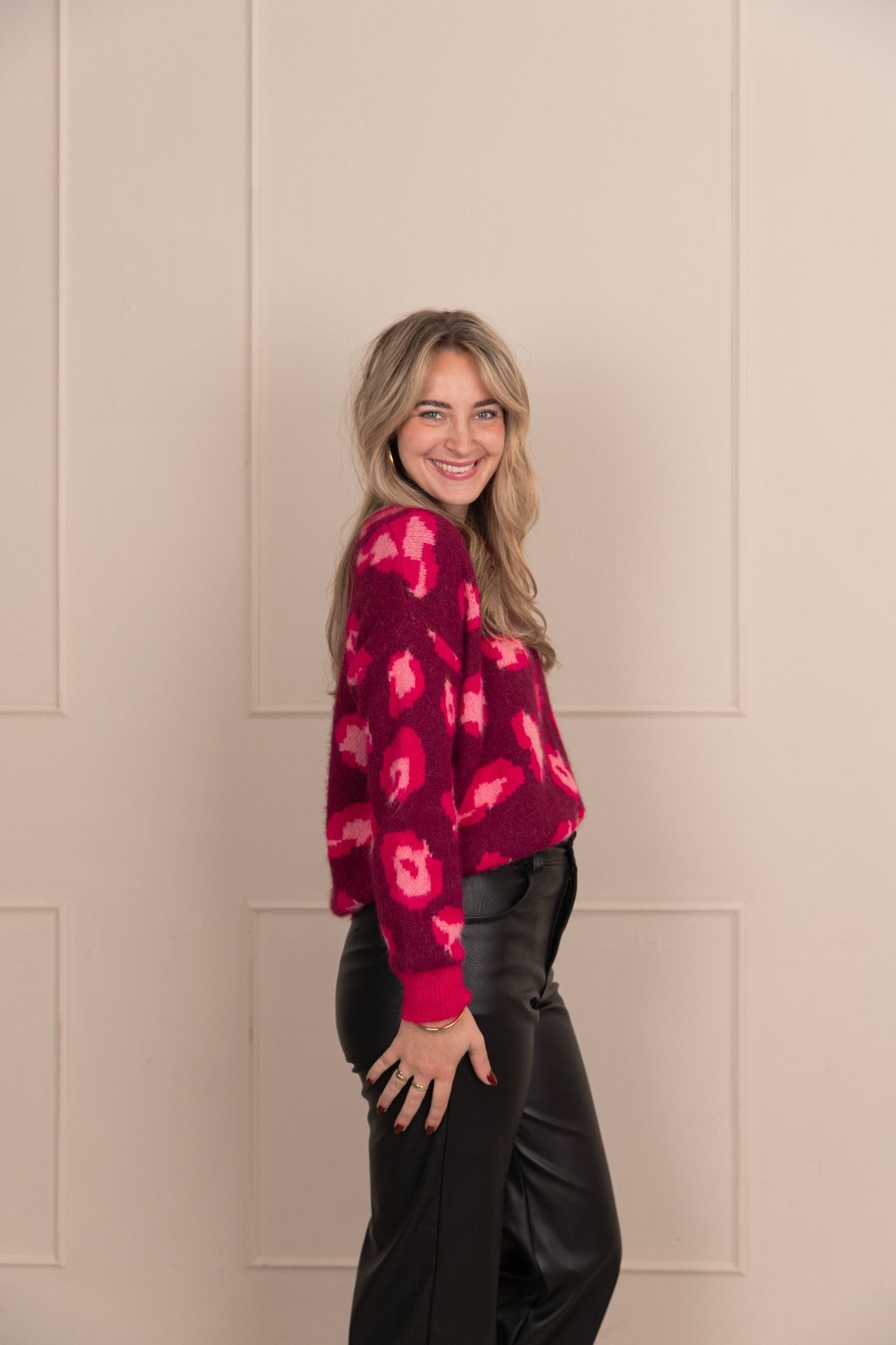 De Devon Knit in roze is gemaakt van een gebreid materiaal, waardoor hij heerlijk warm is. De trui heeft lange mouwen, een ronde halslijn en is voorzien van een leopard print. Combineer deze trui met een jeans voor een casual outfit.