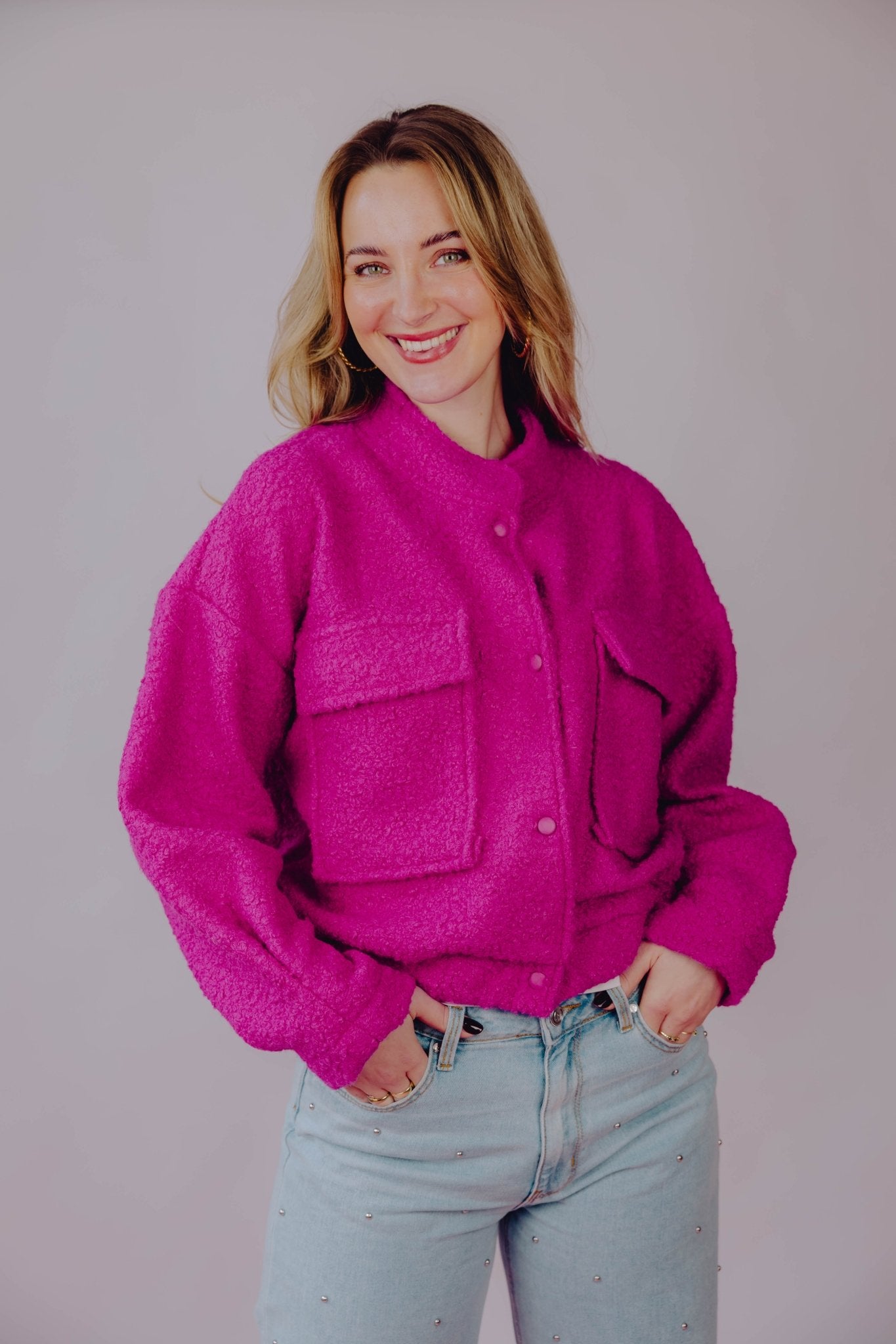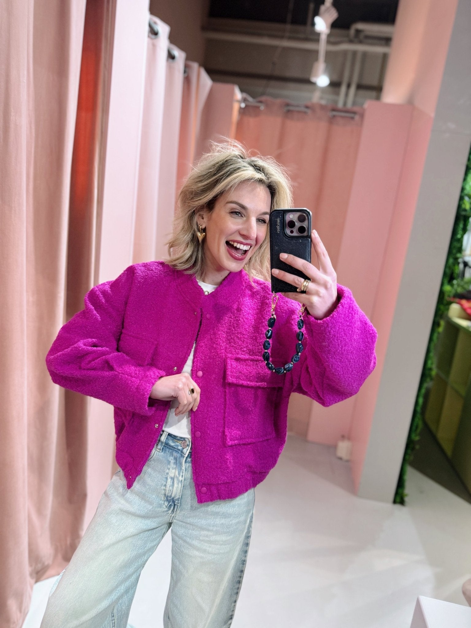 De Didi Jacket in roze is een bomber jasje gemaakt van een zachte stof. De jas heeft twee klepzakken en een knoopsluiting aan de voorkant. Dit jasje is een fijn item om laagjes mee te creëren.