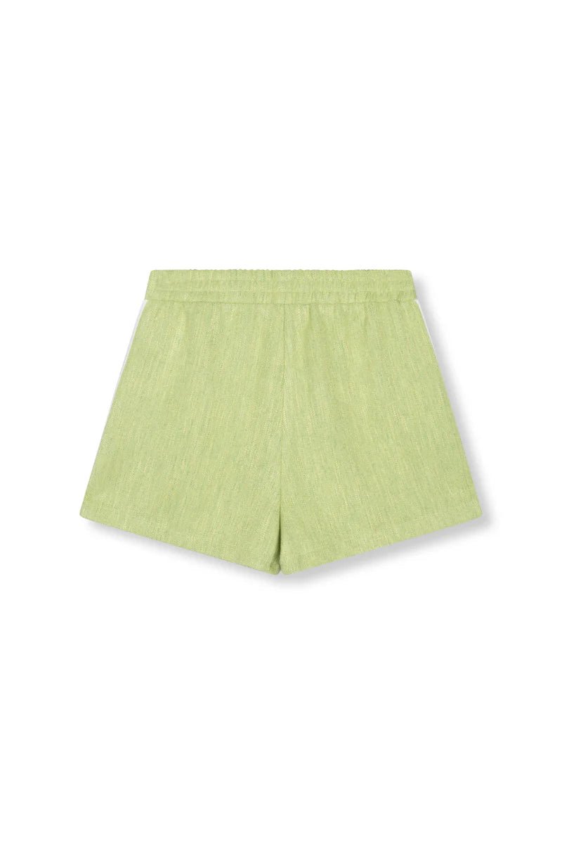 De Dolly Shorts in matcha is een relaxed fit short met een comfortabele pasvorm en is voorzien van een elastische tailleband. Het model heeft steekzakken aan de zijkant en is afgewerkt met contrasterende strepen langs de zijnaden voor een sportief detail. Combineer met de Bennie Blouse voor een complete en stijlvolle set.