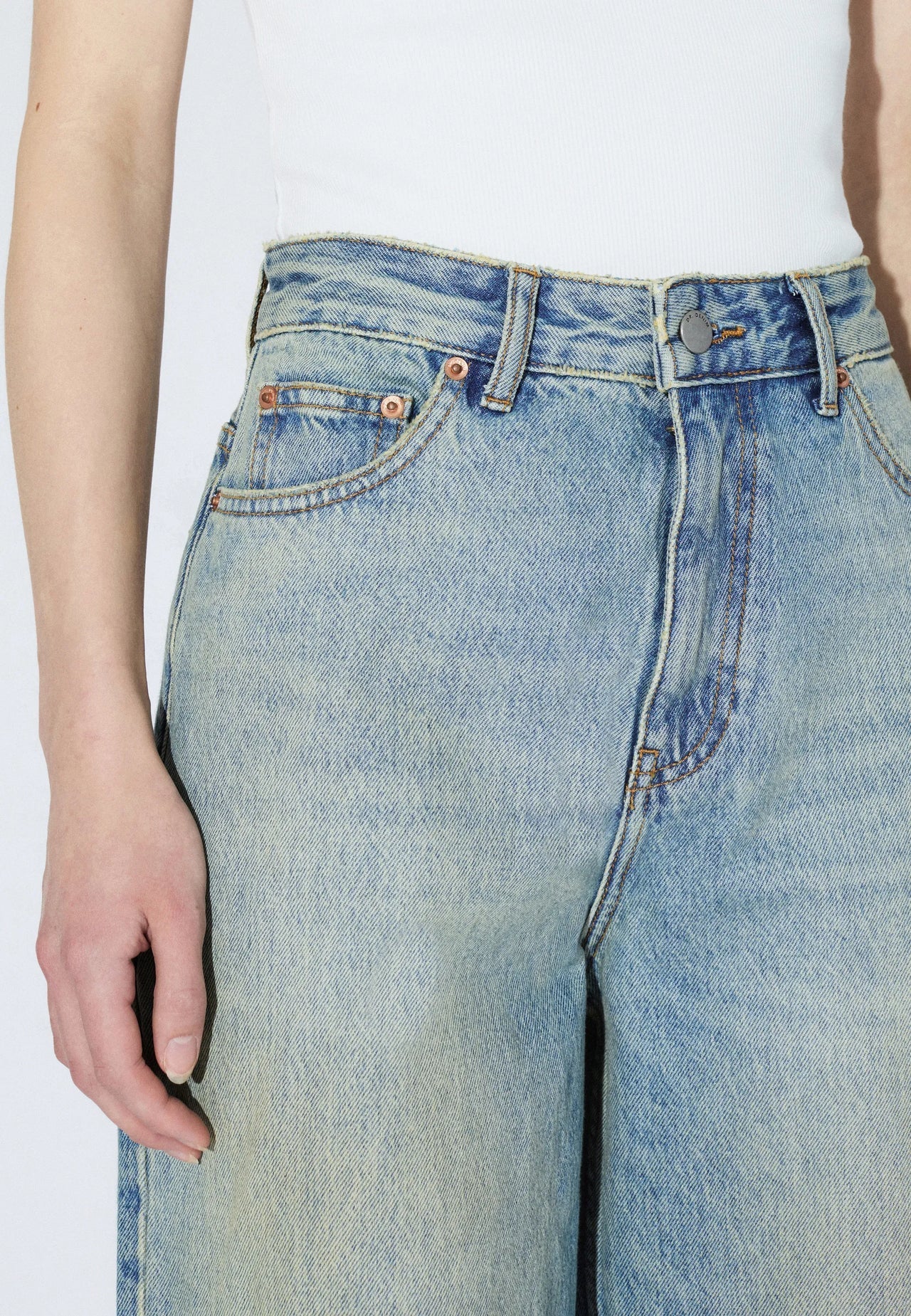 De Donna Jeans in stream sky aged van Dr. Denim is een high waist jeans met een relaxed fit en wijde, rechte pijpen. De broek sluit mooi aan in de taille en valt los vanaf de heupen, wat zorgt voor een comfortabele pasvorm met een stoere uitstraling.