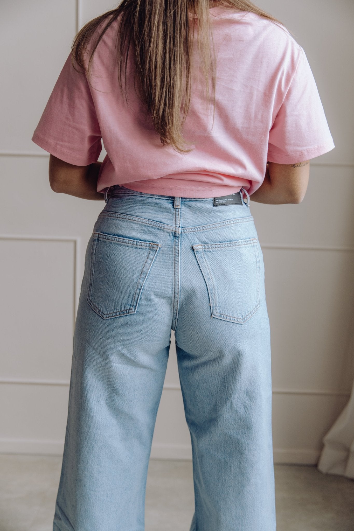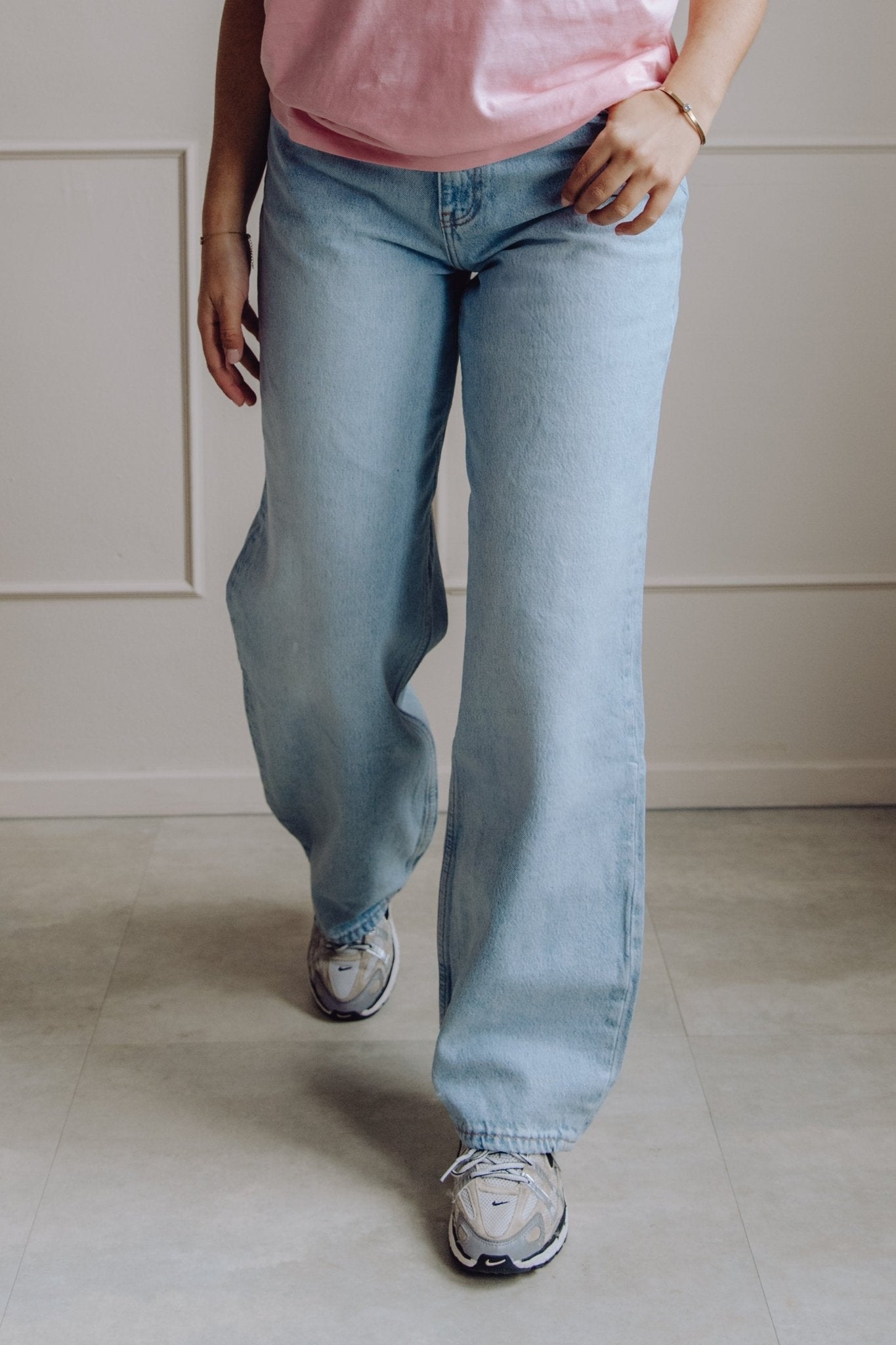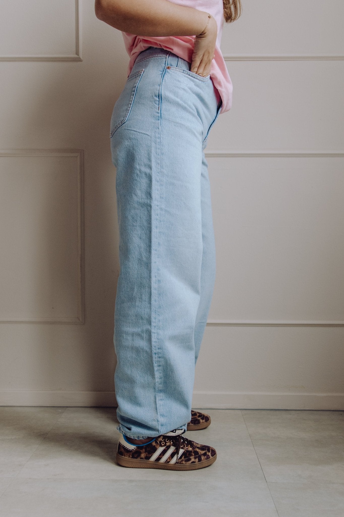 De Donna Jeans in stream light liquid is een wide leg jeans gemaakt van een denim stof zonder stretch. De broek heeft een high waist model en heeft meerdere zakken, riemlusjes. en een Dr.Denim patch op de achterkant.