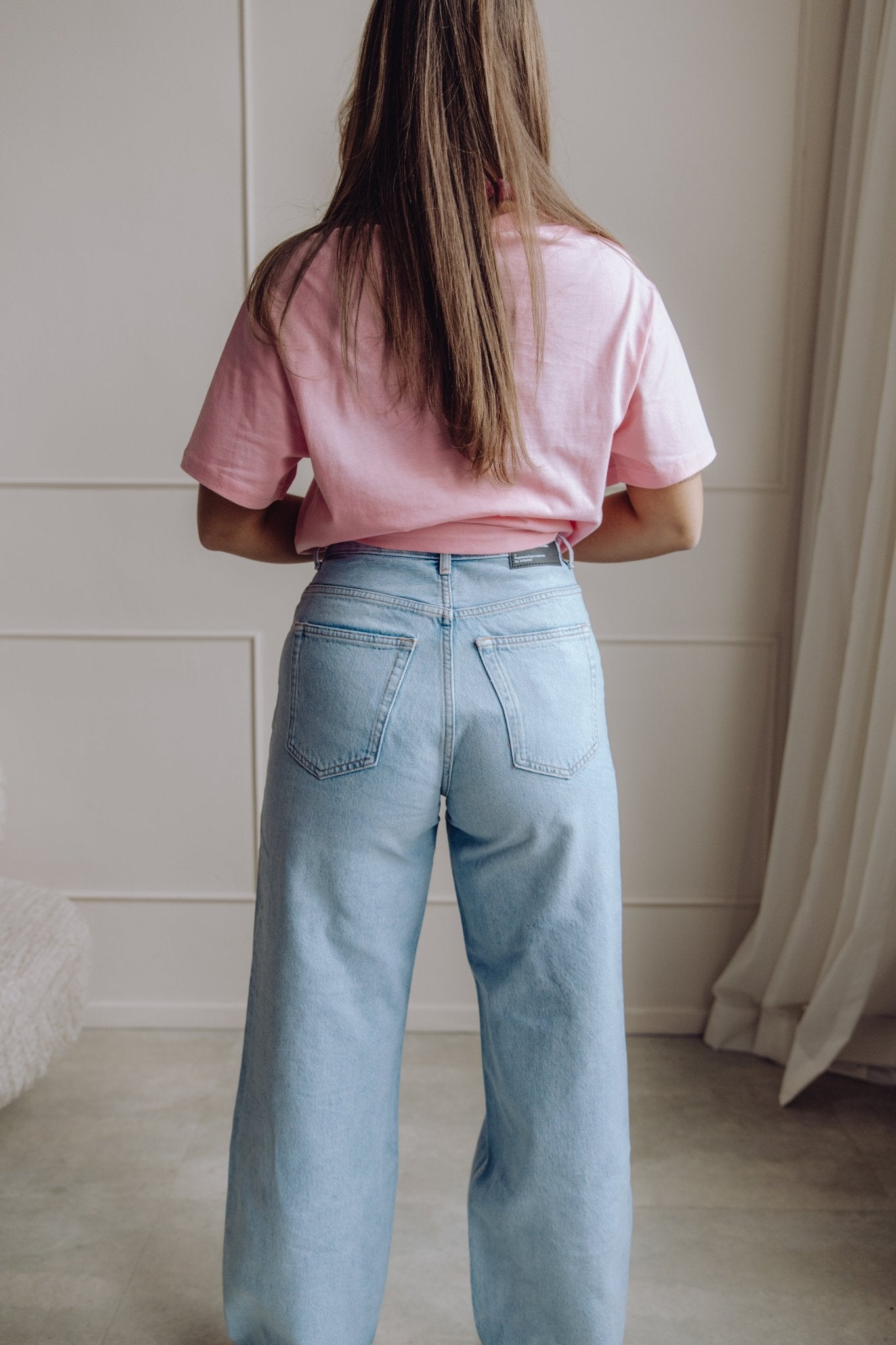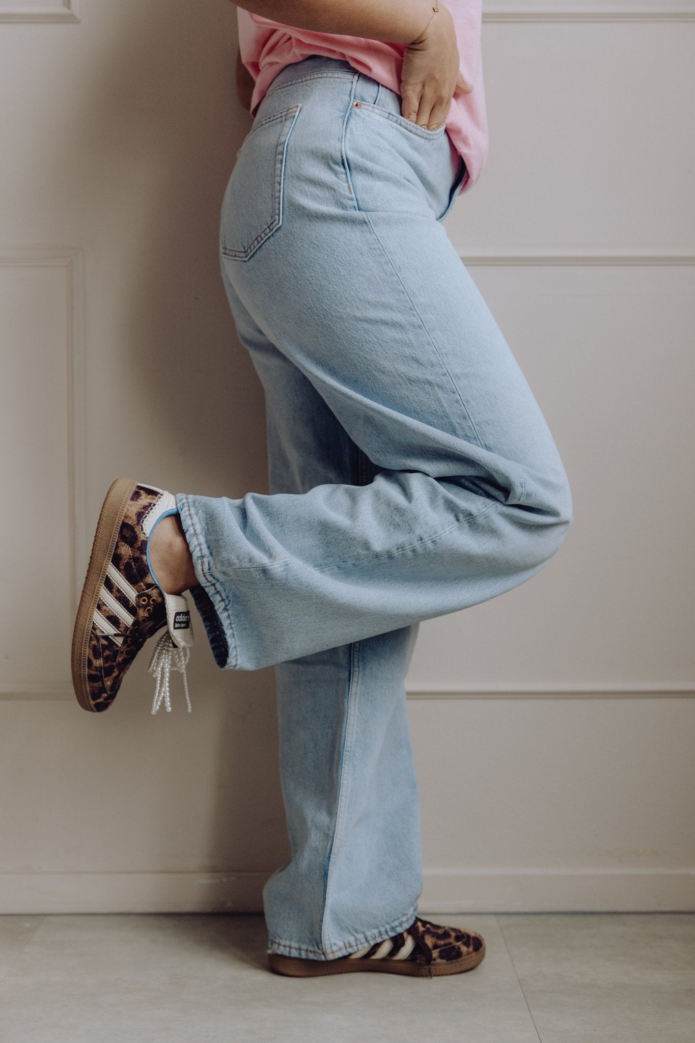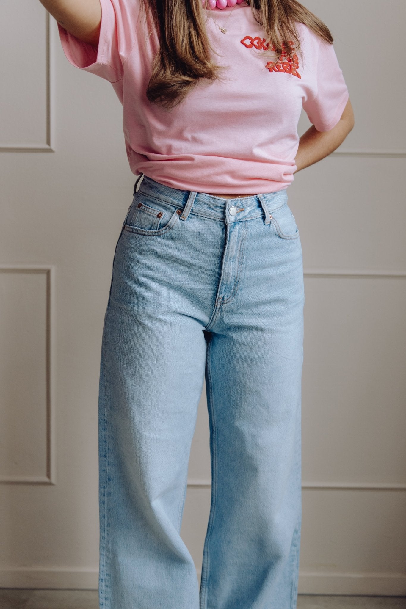 De Donna Jeans in stream light liquid is een wide leg jeans gemaakt van een denim stof zonder stretch. De broek heeft een high waist model en heeft meerdere zakken, riemlusjes. en een Dr.Denim patch op de achterkant.