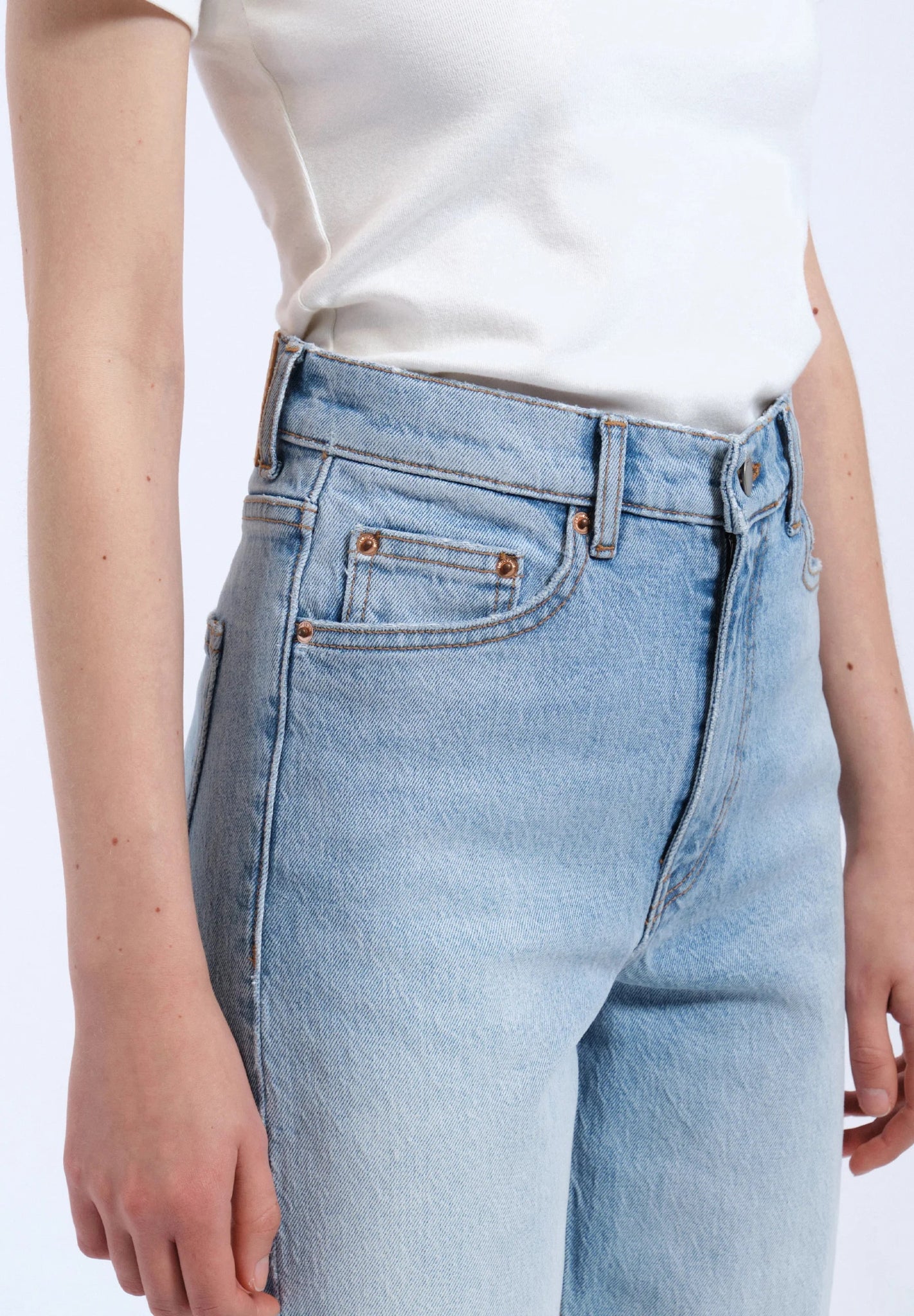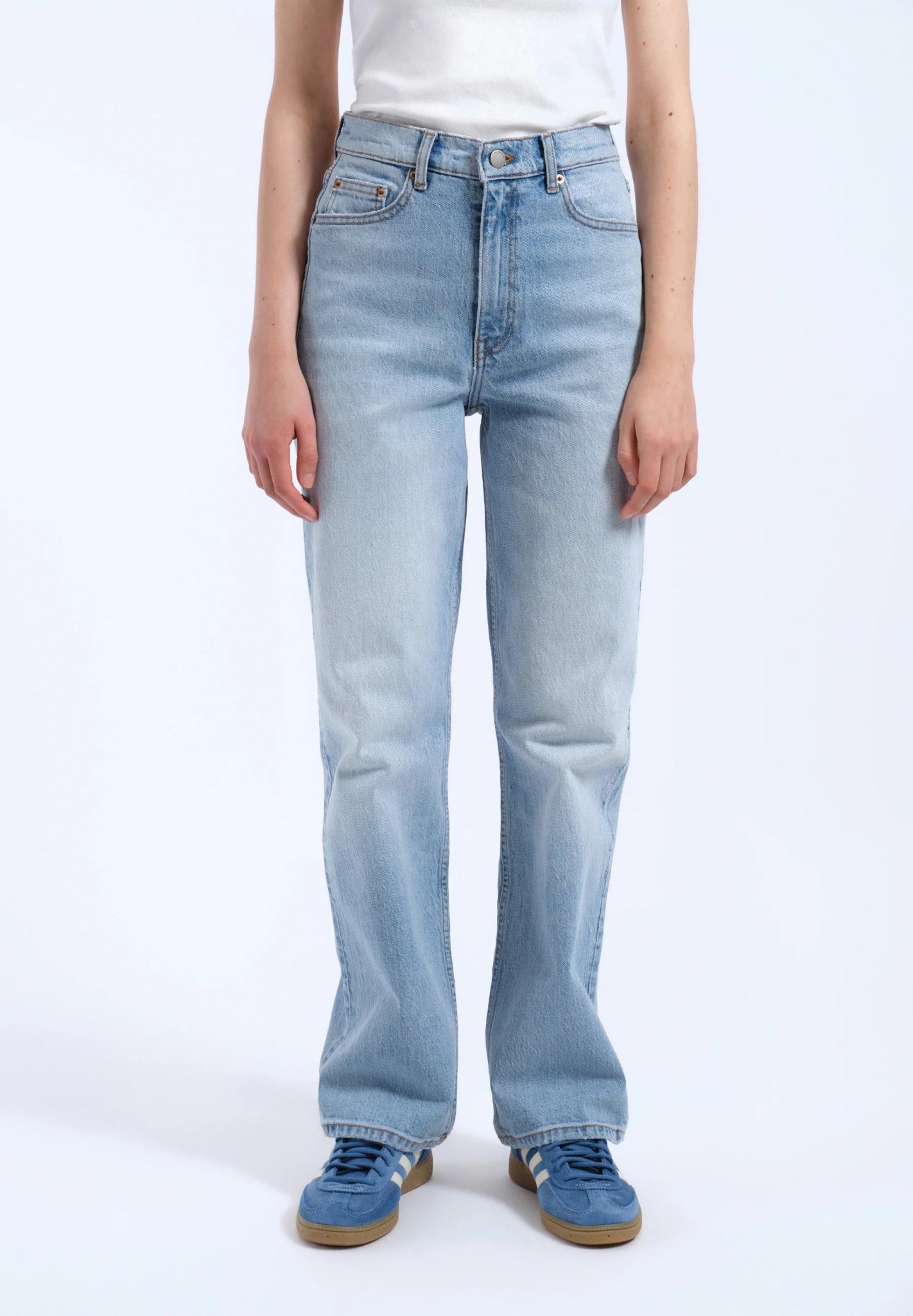 Deze denim jeans is gemaakt van 99% katoen en 1% elastaan, wat zorgt voor een stevige maar comfortabele stof met lichte stretch. De broek is niet gevoerd en heeft een klassieke denim afwerking. Het model heeft een hoge taille en sluit met een verborgen rits. De broek is voorzien van zijzakken, achterzakken en riemlussen, waardoor hij praktisch én makkelijk te stylen is met een ceintuur.