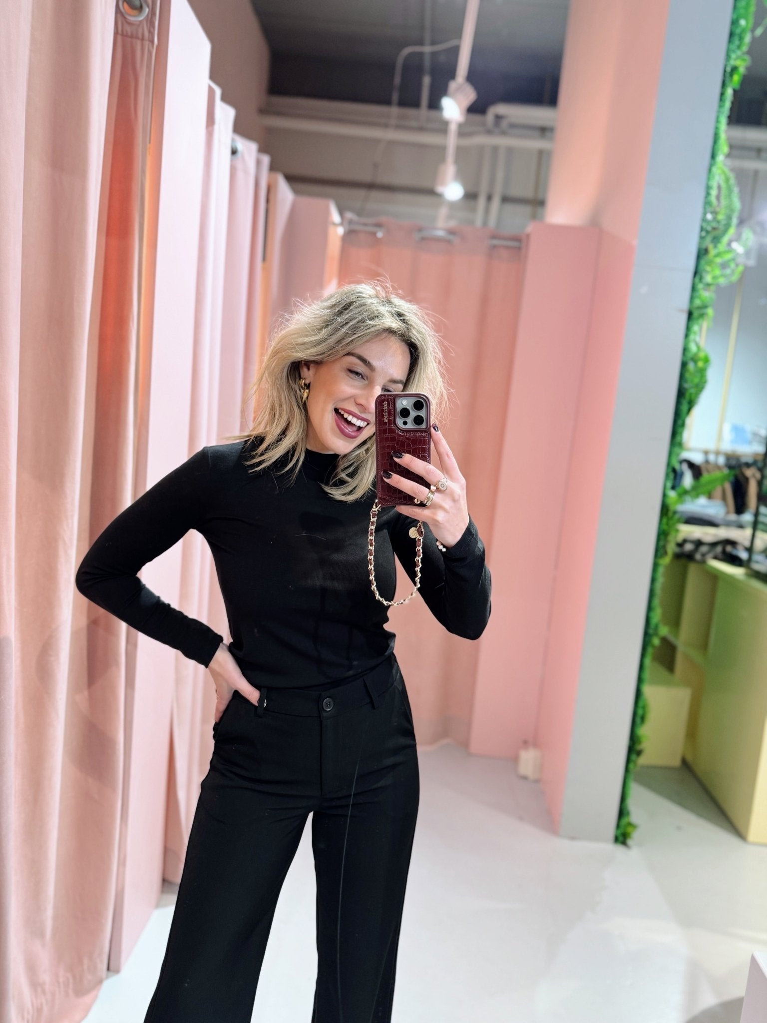 De Elisa Longsleeve in zwart is een top met een aansluitend model. De top is gemaakt van een stretchy stof en heeft lange mouwen met een hoge, ronde halslijn. Deze lange mouwen top is perfect om laagjes mee te creëren in het najaar.