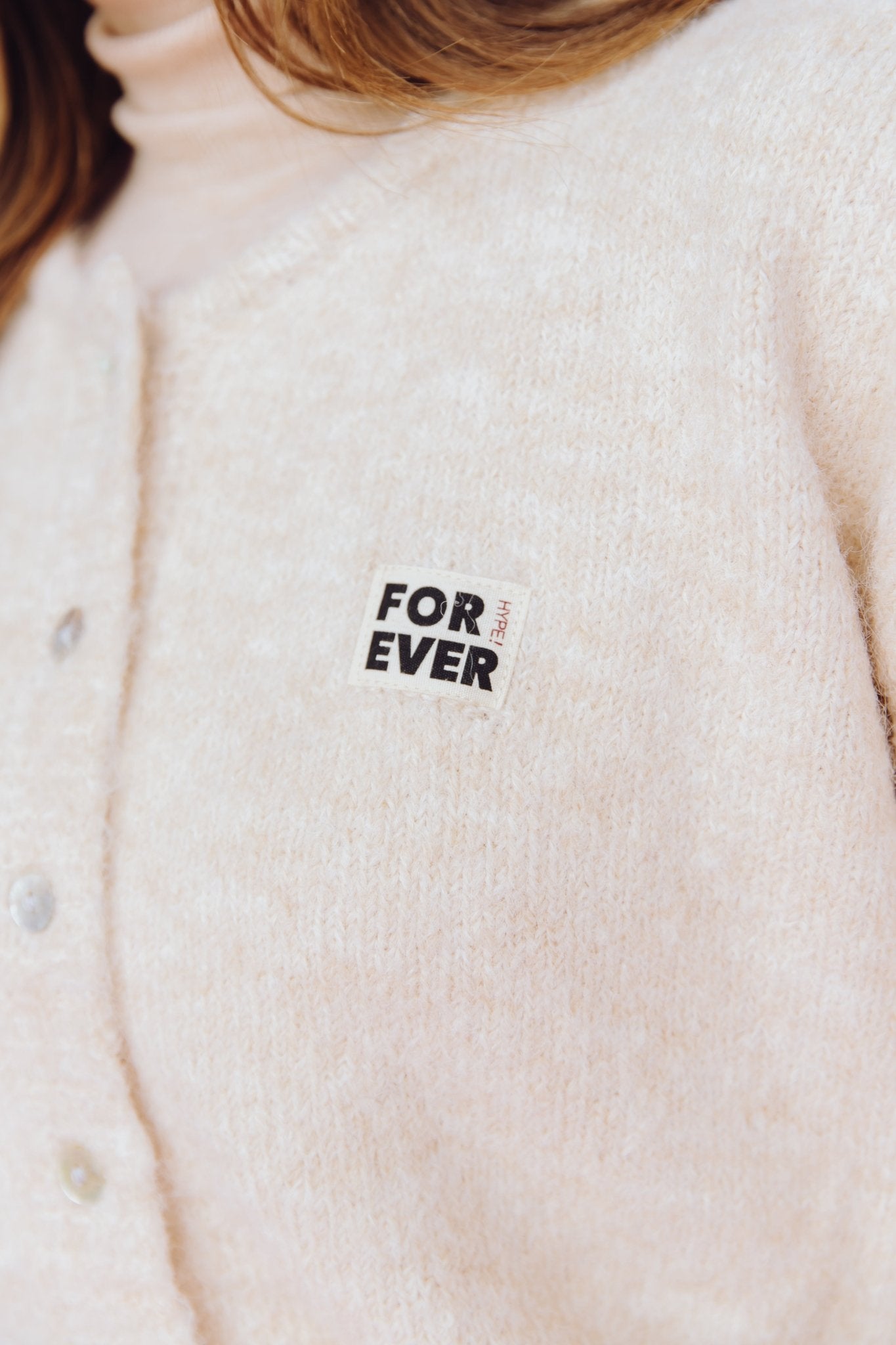 De Elodie Cardigan heeft een boxy oversized fit en is gemaakt van een zachte, elastische stof. Het vest heeft lange mouwen, een ronde hals en glanzende knoopjes en voelt warm en comfortabel aan. Op de voorkant staat een crème logo met de tekst FOR EVER hype!, wat zorgt voor een speels accent. Ideaal om te dragen in laagjes met het koude weer!