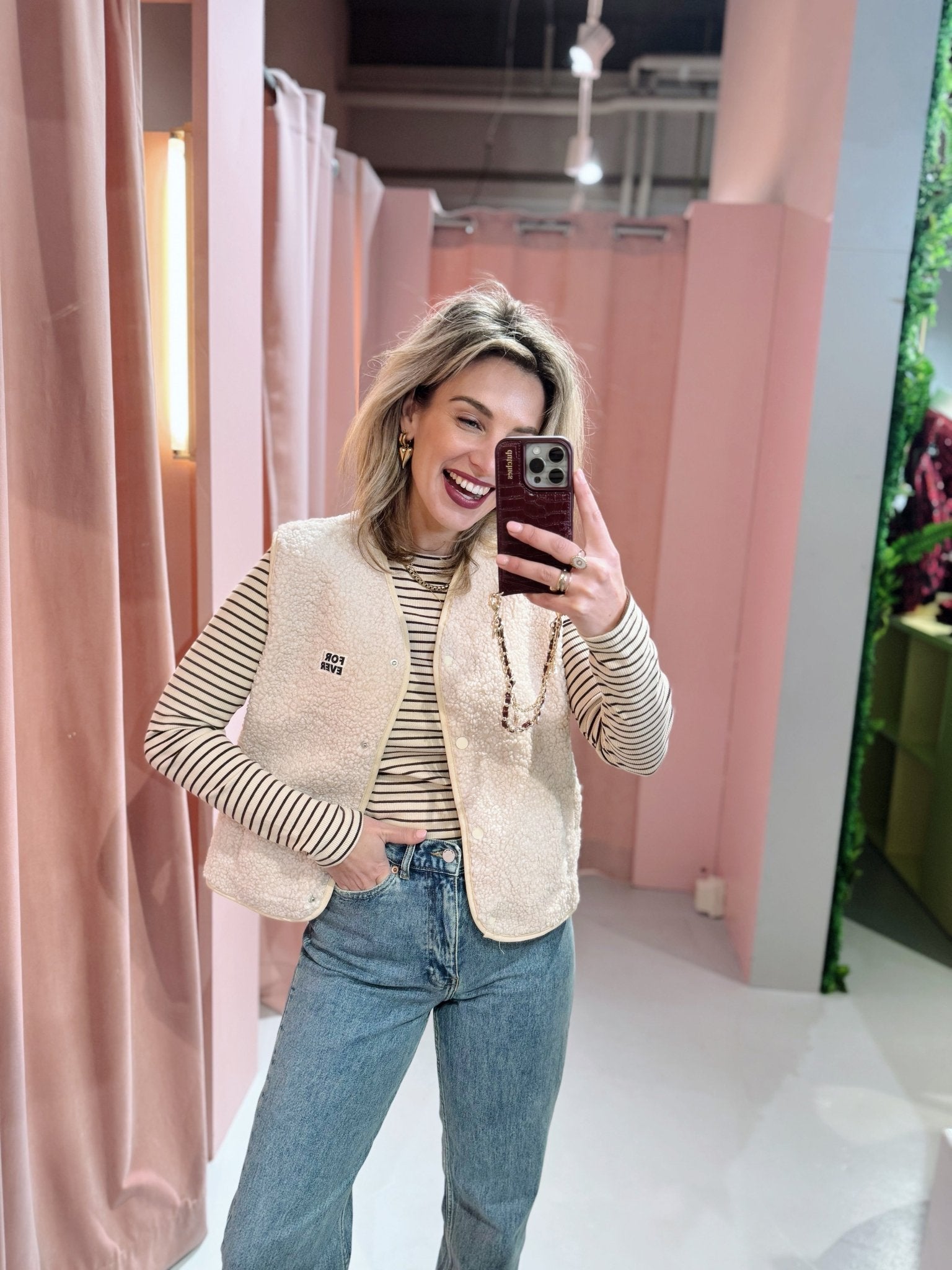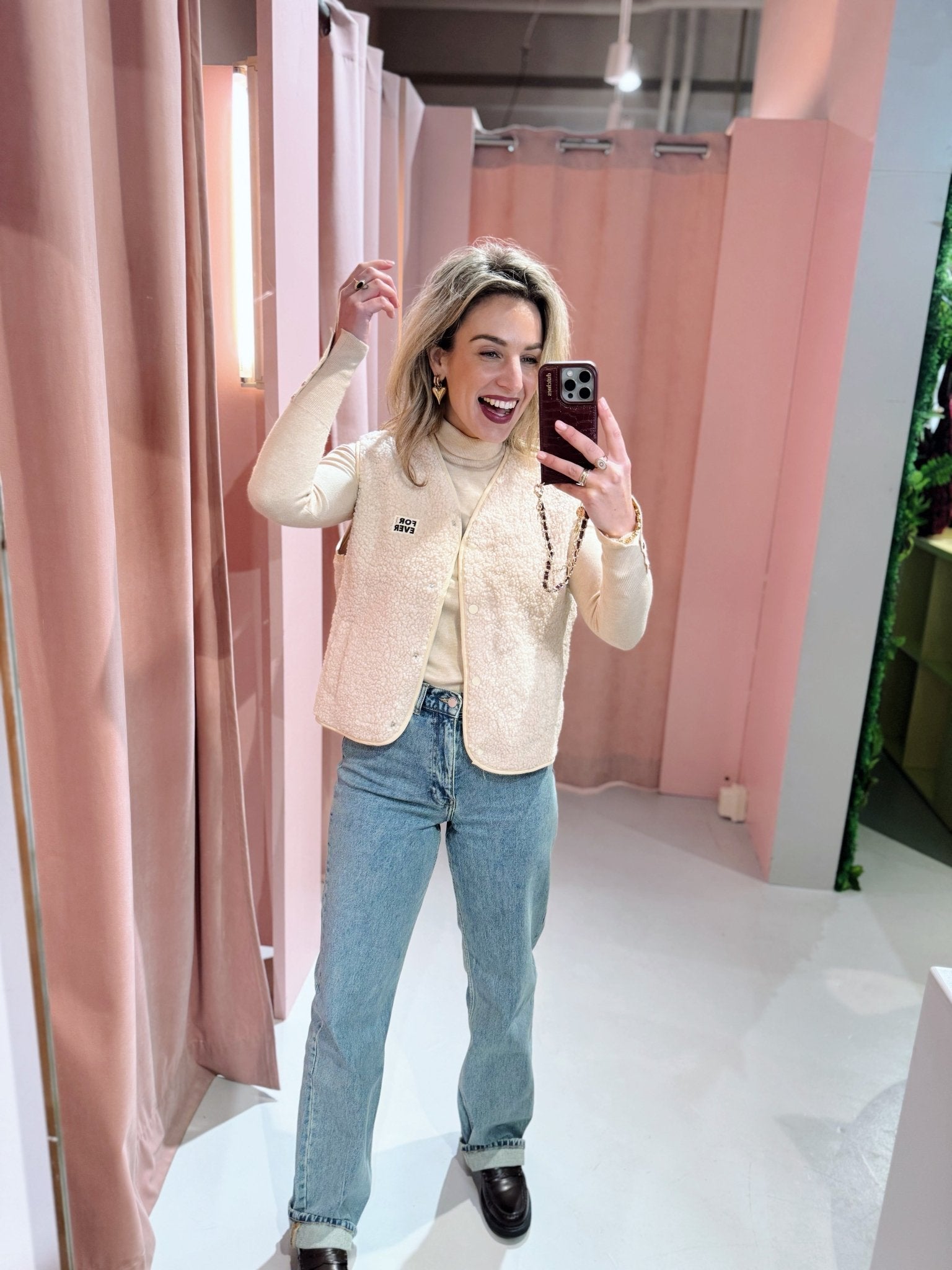 Pasvorm: Het Elodie Gilet is verkrijgbaar in 2 maten en heeft een boxy fit.