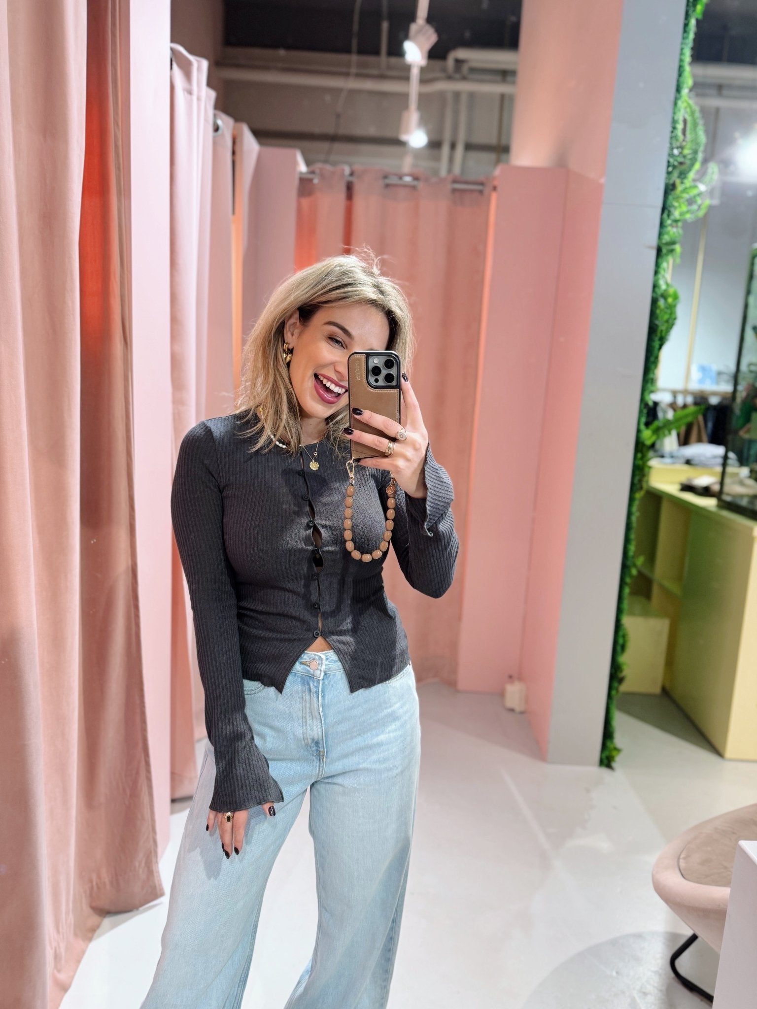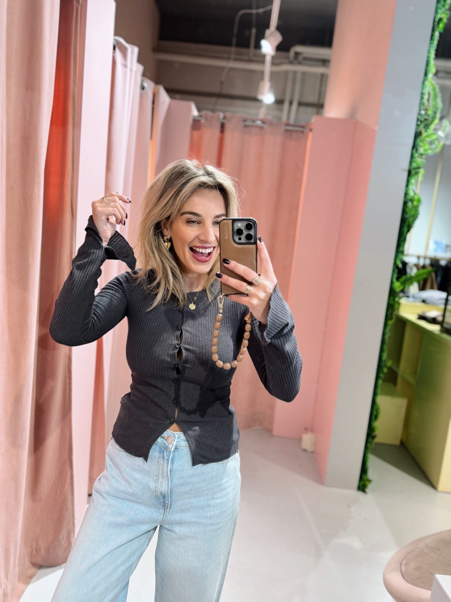 Jessica is 1,65m lang en draagt altijd maat S of S/M.