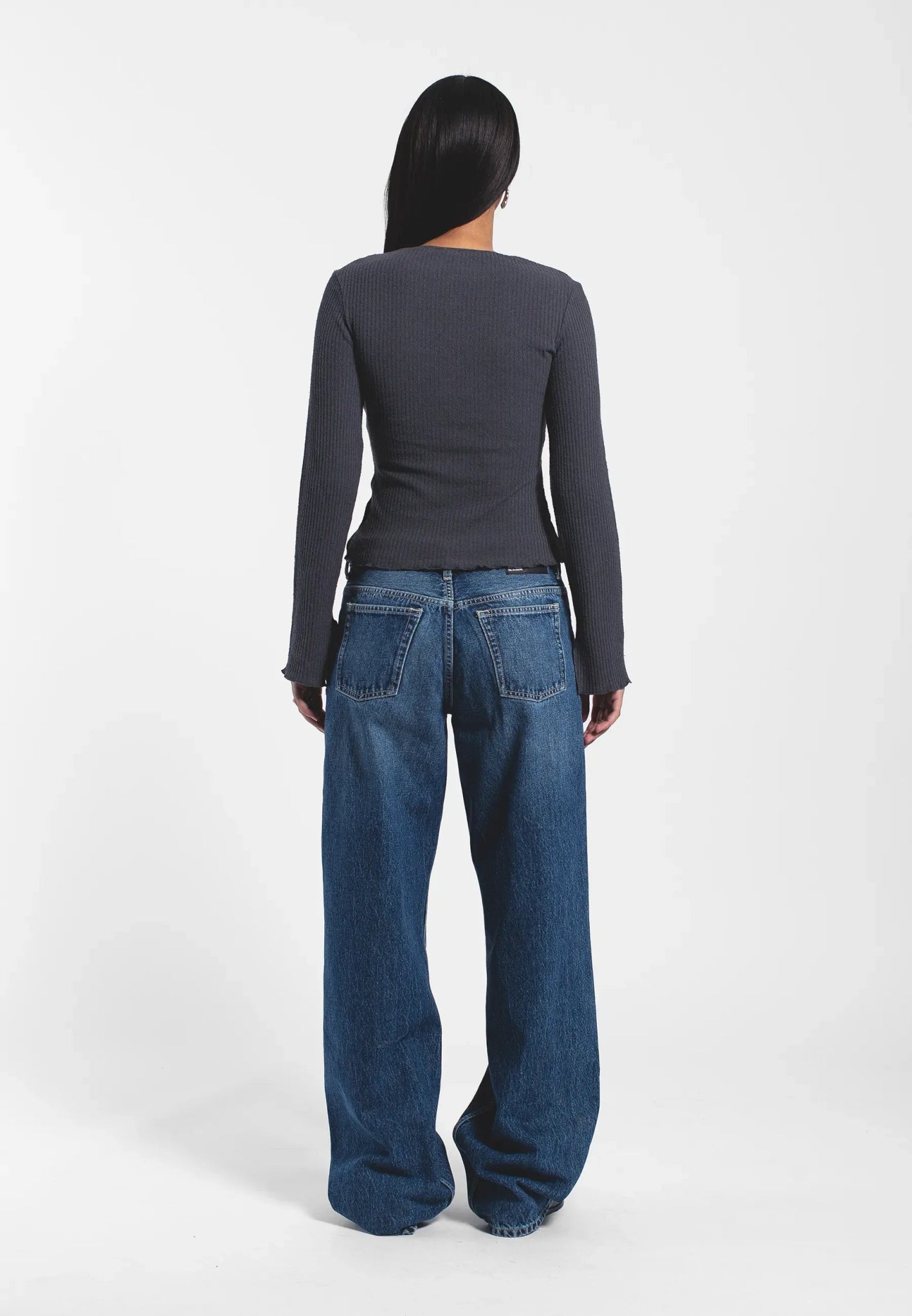 Deze grijze top van Dr. Denim heeft een regular fit en een structuur in ribstof. Het model sluit met kleine knoopjes aan de voorkant en heeft een lichte split aan de mouwen. De zachte, elastische stof zorgt voor een comfortabele pasvorm met een vrouwelijke vorm.