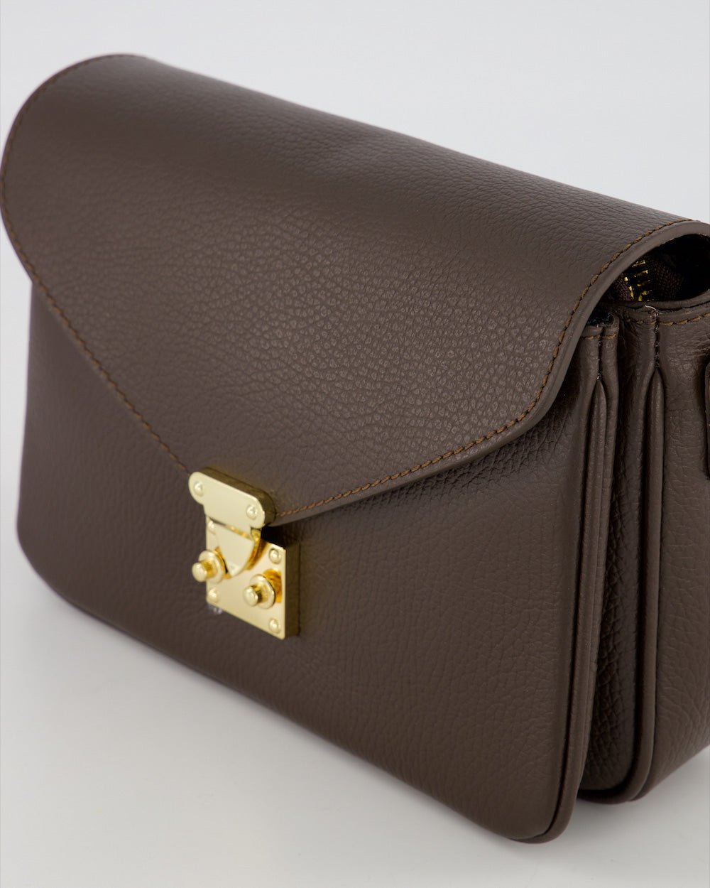 Een prachtig leren tas met mooie gouden sluiting aan de voorkant. Fijn ook is de strap die verstelbaar is, zo kan je jouw beste lengte om te dragen zelf bepalen.
