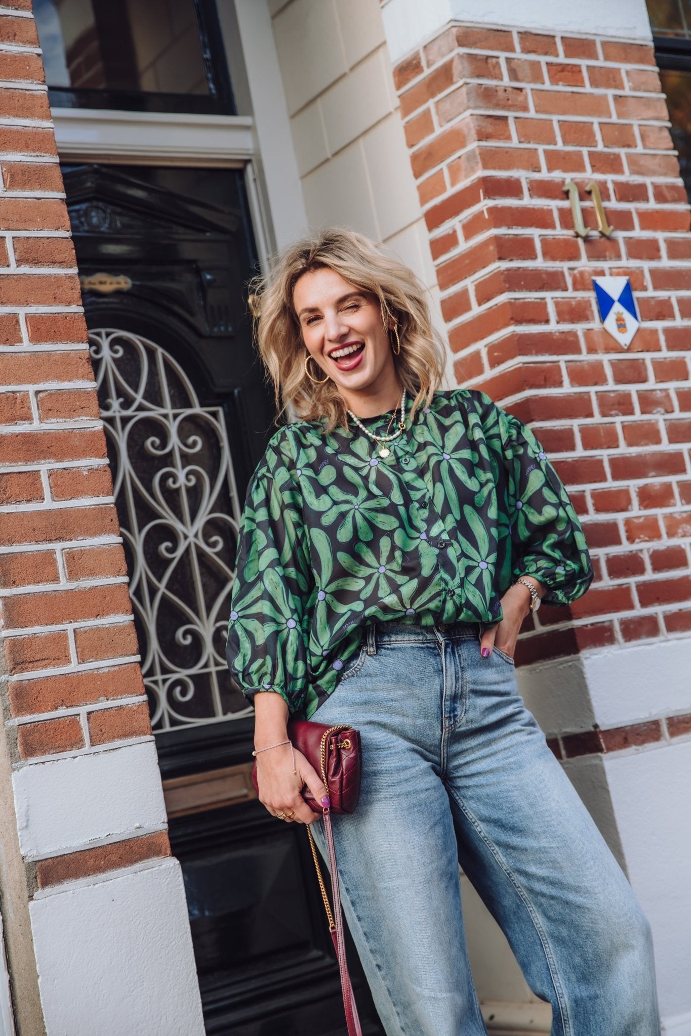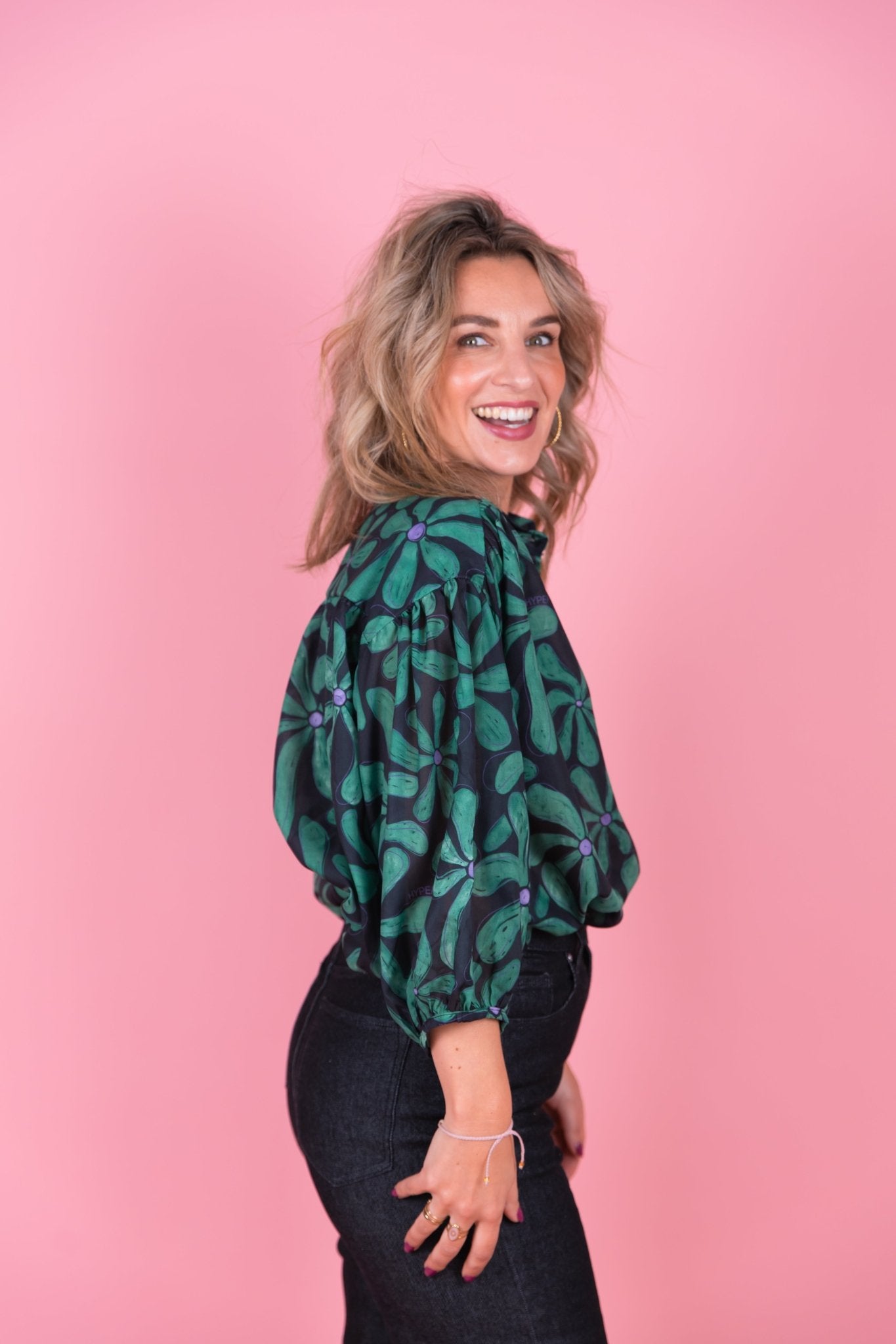De Flora Blouse in groen is gemaakt van een luchtige stof met een bloemenprint. De blouse is voorzien van 3/4 pofmouwen en een ronde halslijn en is gemakkelijk te sluiten door middel van een knoopsluiting. Daarnaast heeft deze blouse een wijd model en is hij leuk om zowel casual als netjes te dragen.