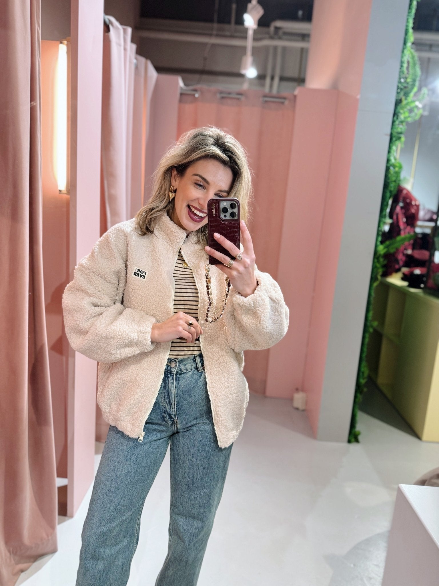 Jessica is 1,65m lang en draagt altijd maat S of S/M.