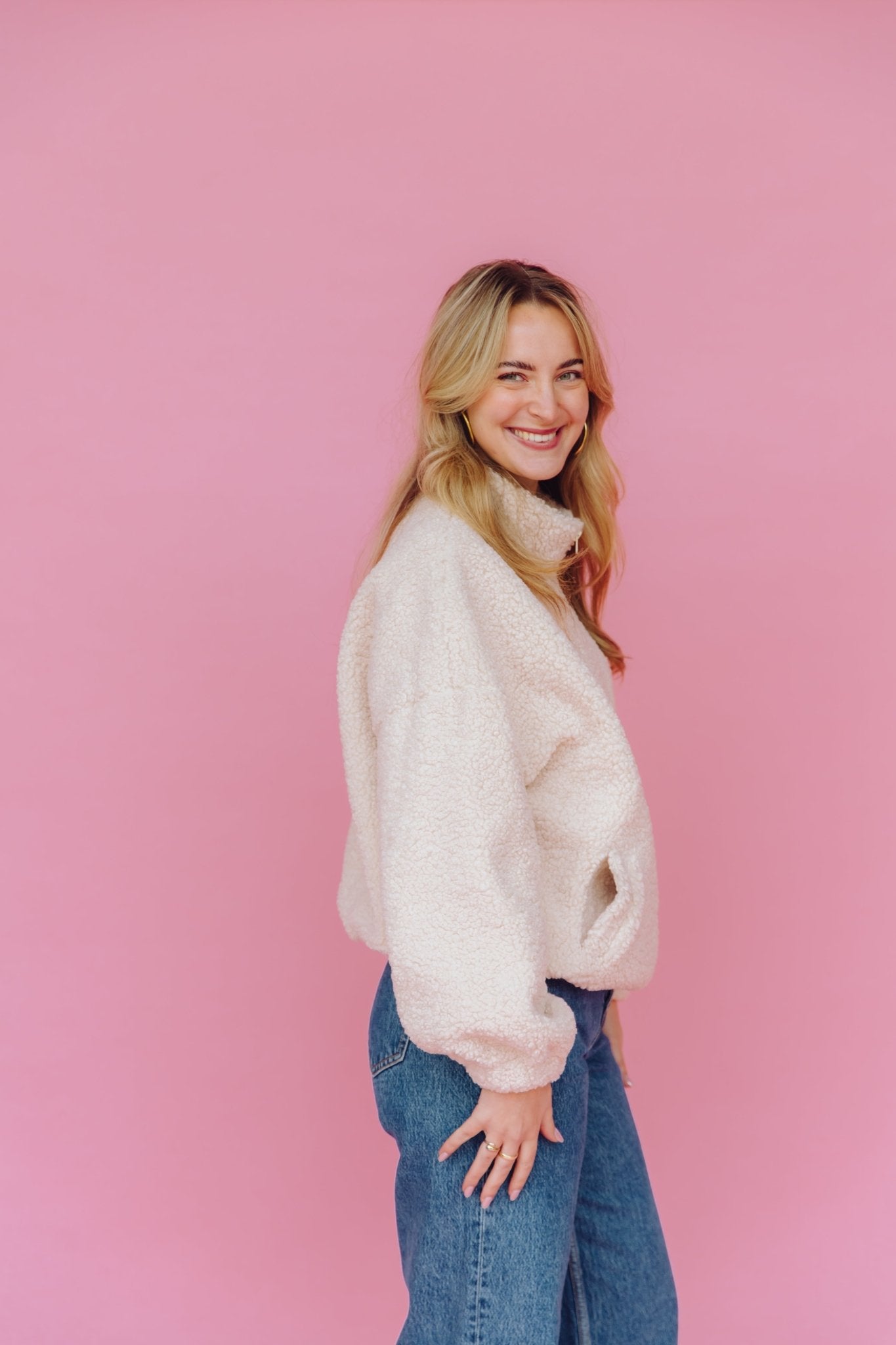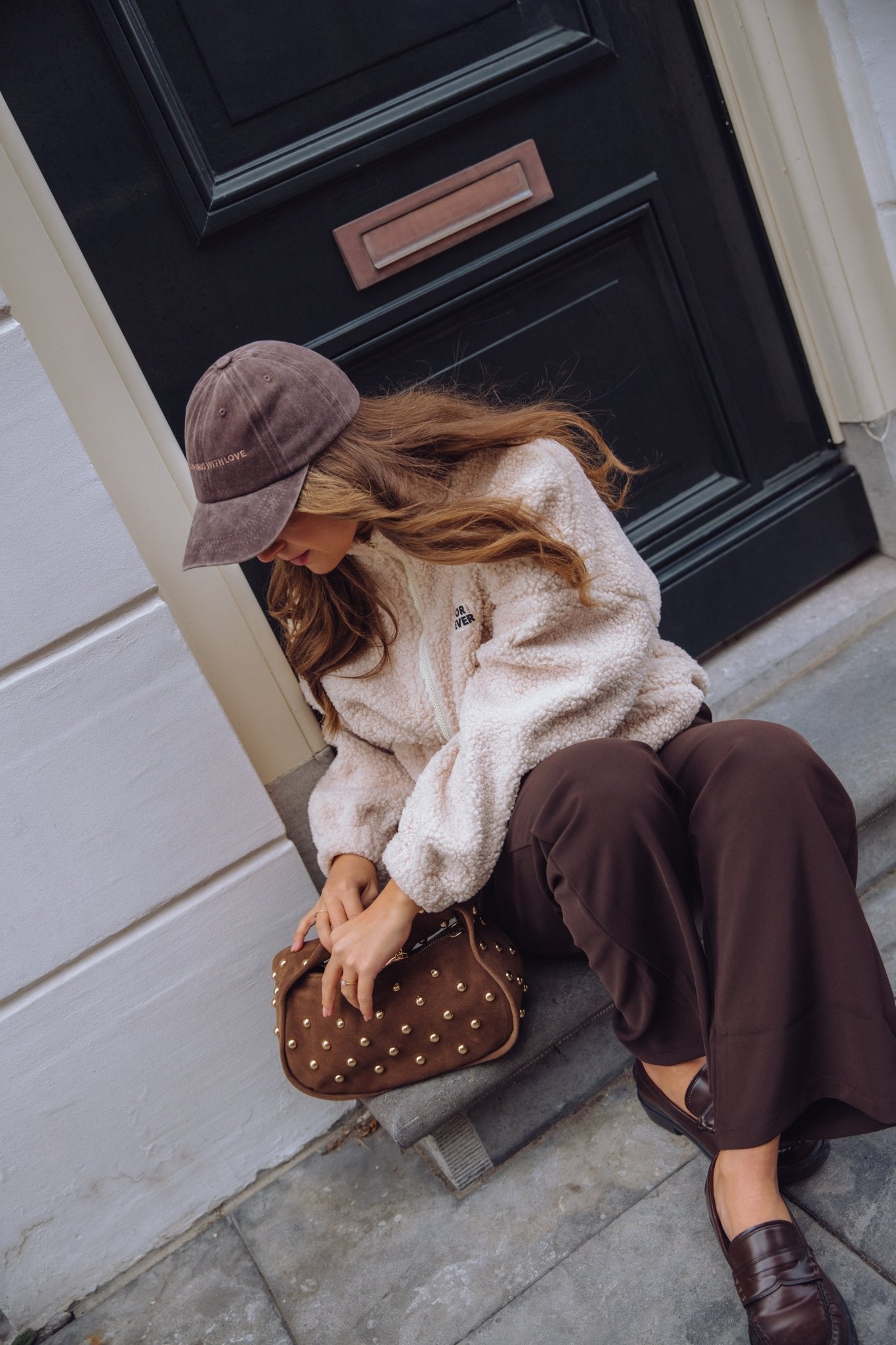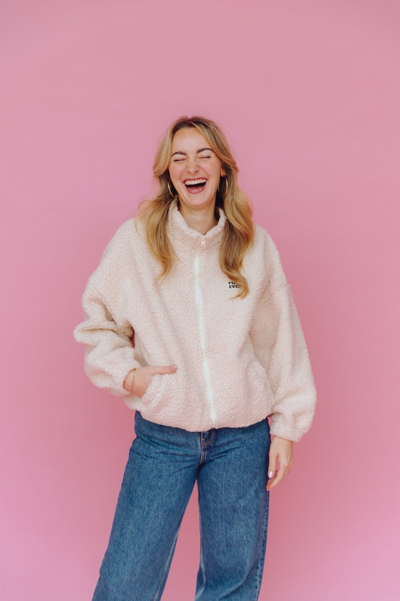 De Floris Cardigan in beige is een oversized teddy vest met een hoge kraag. Het vest is gemaakt van een warme, zachte stof en heeft een suède-look binnenkant. De Floris Cardigan is voorzien van een "forever HYPE!" patch links op de borst, een ritssluiting en twee steekzakken.
