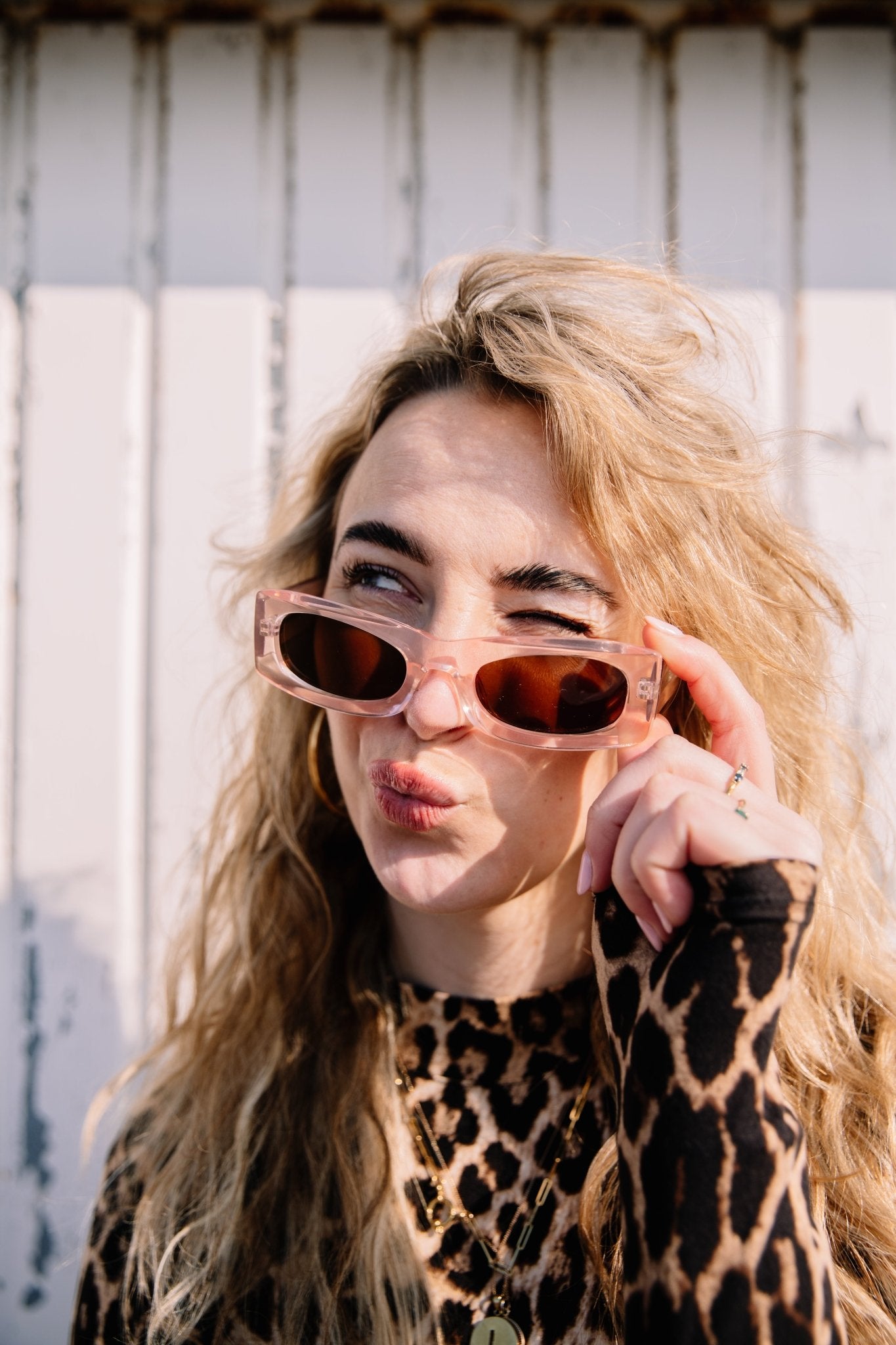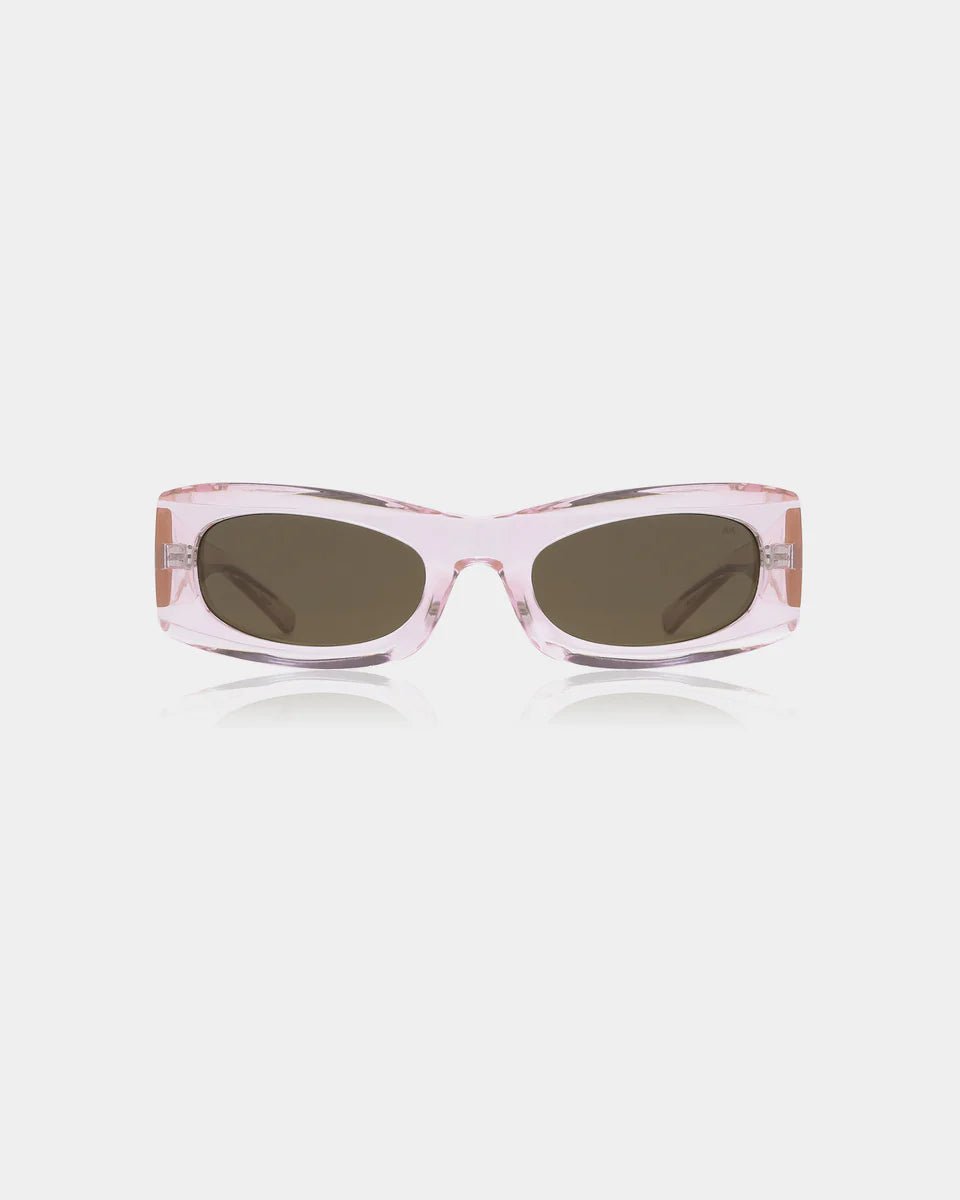 De Frida - Galactic Pink zonnebril heeft een opvallende transparante roze tint en een tijdloos design. De UV 400 bescherming en polycarbonaat lenzen bieden optimale bescherming tegen de zon, terwijl de optische scharnieren van hoge kwaliteit en de vormbare veren met metalen kern zorgen voor een comfortabele en duurzame pasvorm. Gemaakt van meer dan 50% gerecycled materiaal, BPA-vrij en geleverd met een schoonmaakzakje.