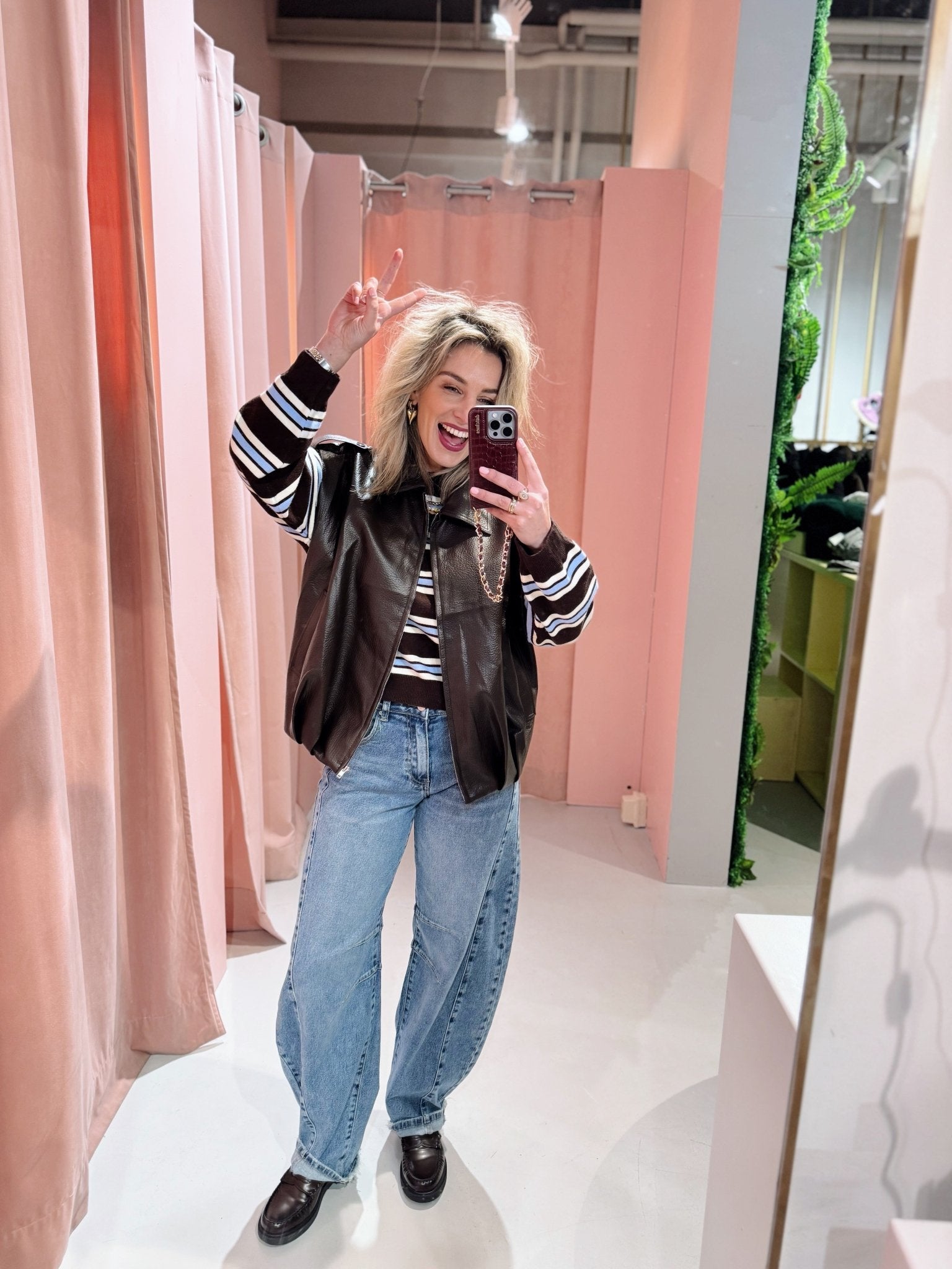 Jessica is 1,65m lang en draagt altijd maat S of S/M.