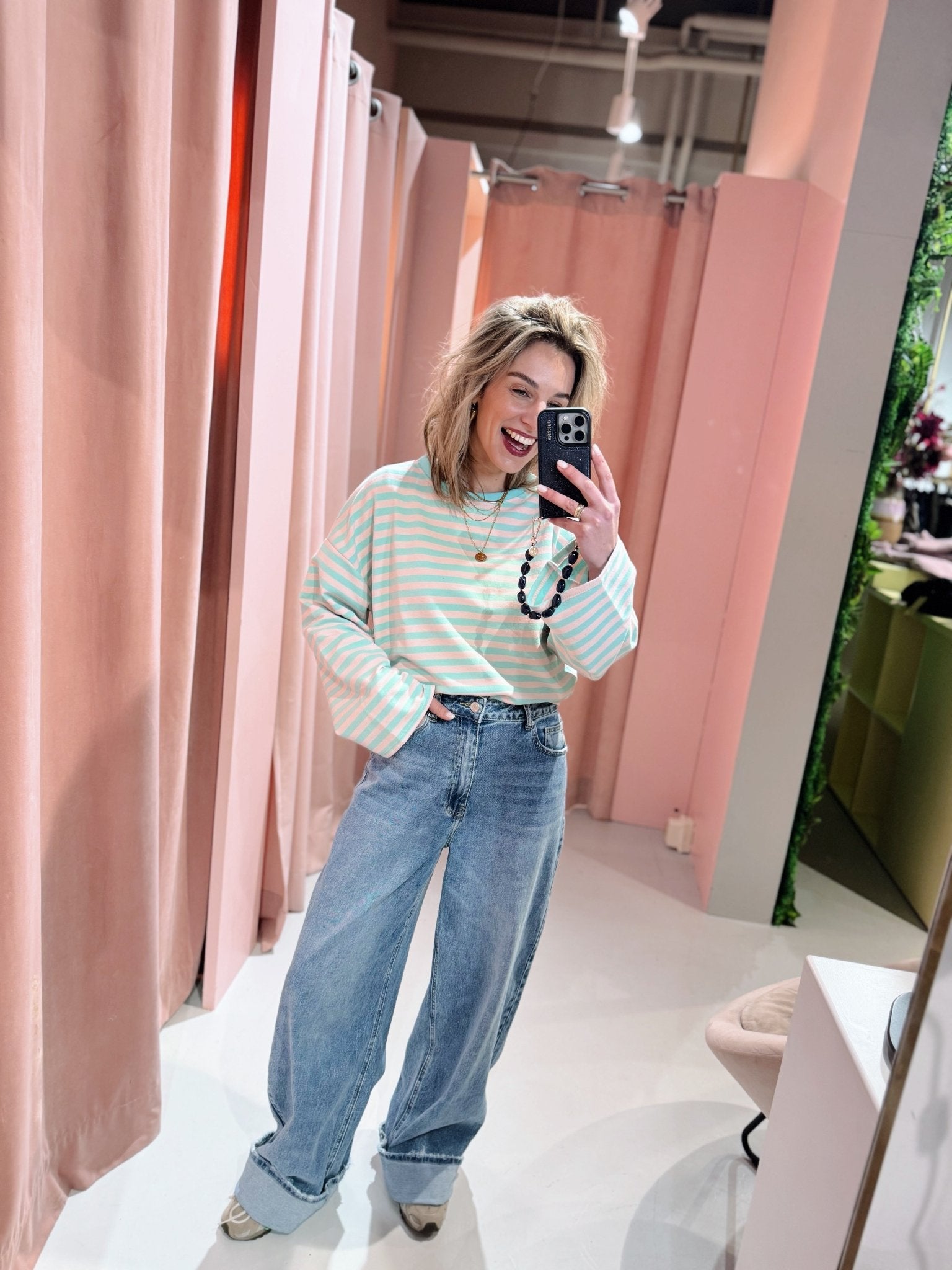 Jessica is 1,65m lang en draagt altijd maat S of S/M.