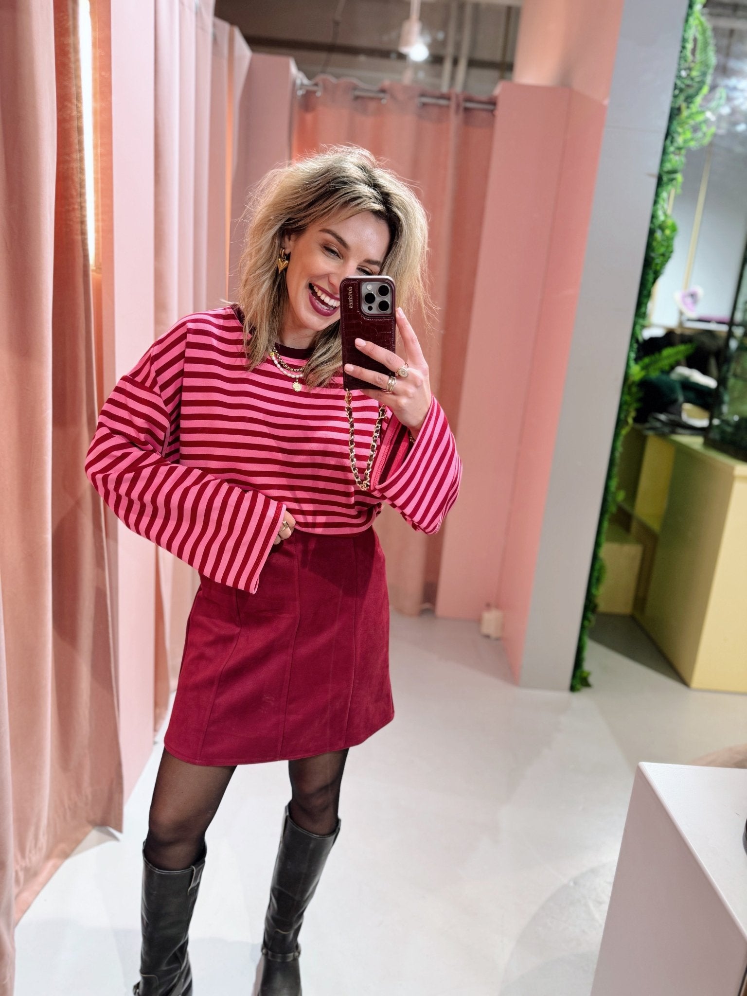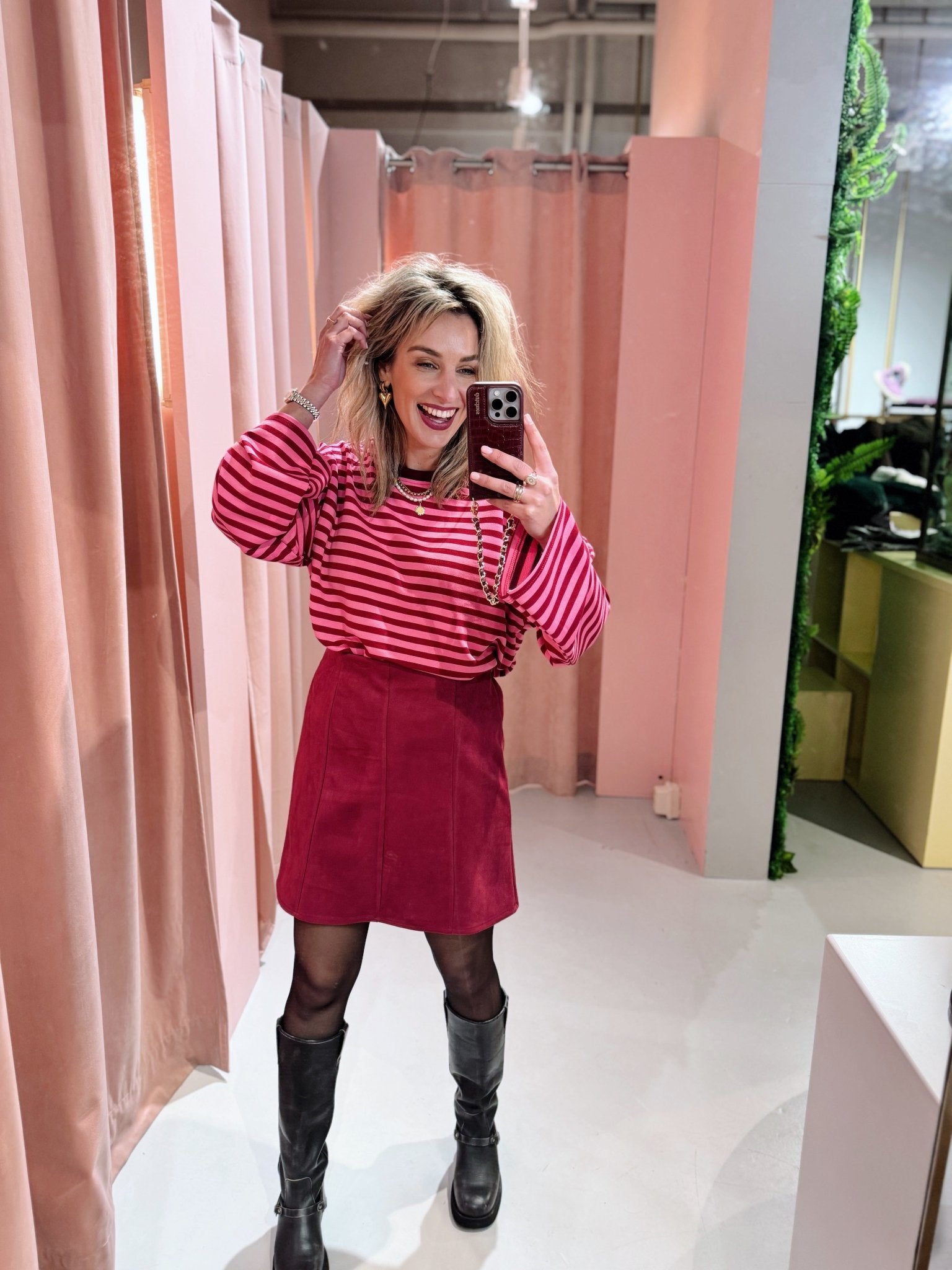 Jessica is 1,65m lang en draagt altijd maat S of S/M.