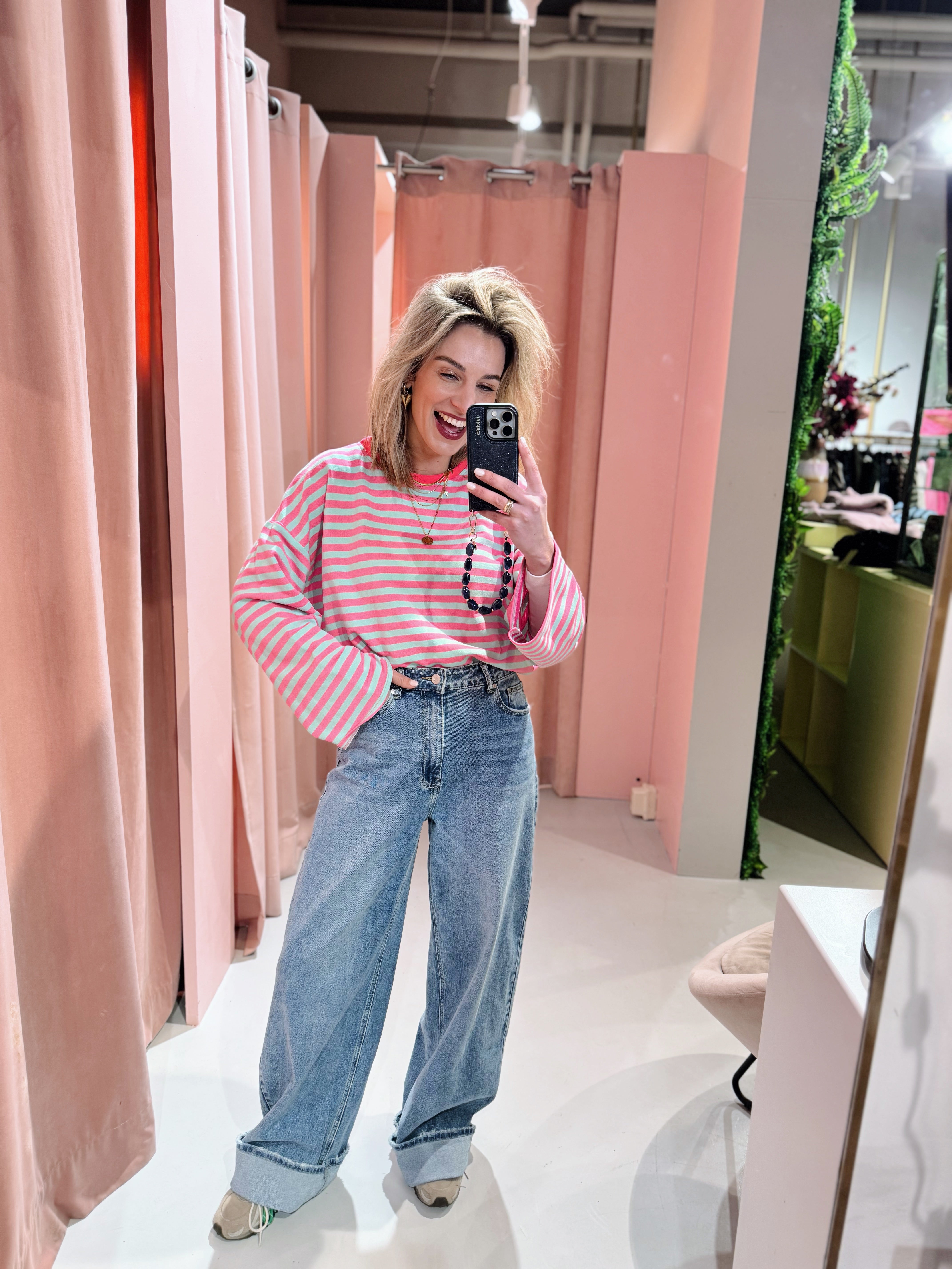 De Harvey Longsleeve in turquise met roze is een top met een oversized model. De top is gemaakt van een stretchy stof, heeft lange mouwen met een hoge, ronde halslijn en een streep patroon. Deze lange mouwen top is perfect om laagjes mee te creëren in het najaar.